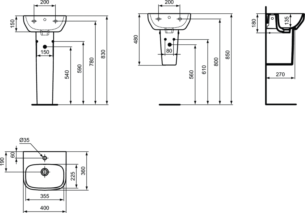 Półpostument Ideal Standard i.life A mały. Do montażu z umywalką do mycia rąk 45 cm. Zestaw montażowy TT0257919 w komplecie.