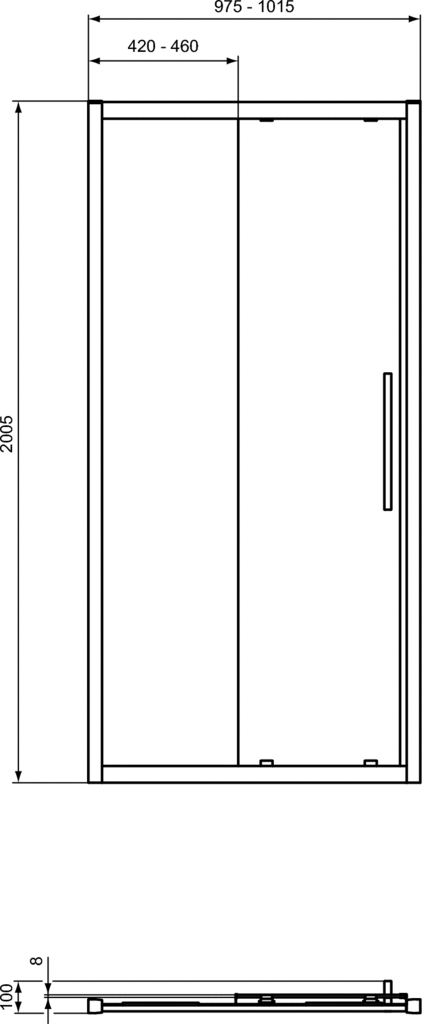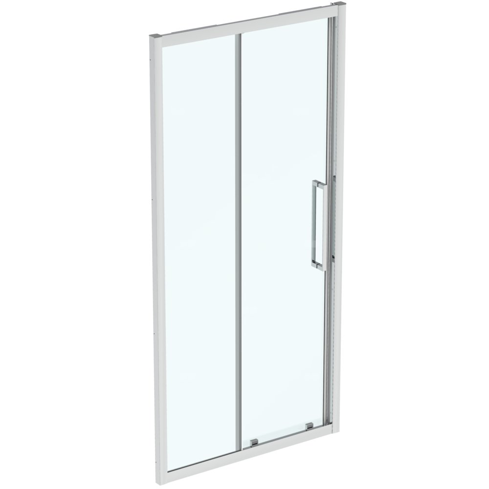 Drzwi przesuwne prysznicowe z panelem bocznym. Wykonane z bezpiecznego transparentnego szkła 8 mm z powłoką Ideal Clean zabezpieczającą przed osadzaniem się kamienia. Profile aluminiowe o grubości 1,2 mm. Rozciągliwość 20 mm na profil. Zastosowanie systemu podwójnych kółek na górze z systemem szybkiego zamykania na dole. Przeznaczony do montażu we wnęce (ściana do ściany) lub w narożniku (z panelem bocznym typu L). Do montażu z brodzikami Ideal Standard lub bezpośrednio na płytkach. Wszystkie produkty z linii są odwracalne. Więcej informacji oraz rekomendowanych rozwiązań znajduje się w katalogu lub cenniku.