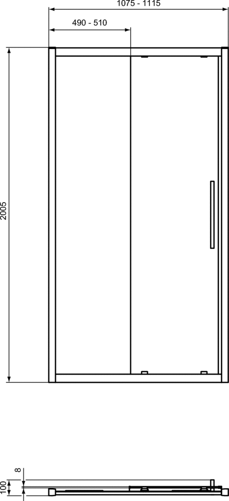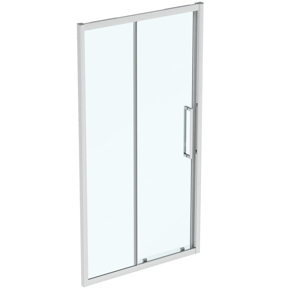 Drzwi przesuwne prysznicowe z panelem bocznym. Wykonane z bezpiecznego transparentnego szkła 8 mm z powłoką Ideal Clean zabezpieczającą przed osadzaniem się kamienia. Profile aluminiowe o grubości 1,2 mm. Rozciągliwość 20 mm na profil. Zastosowanie systemu podwójnych kółek na górze z systemem szybkiego zamykania na dole. Przeznaczony do montażu we wnęce (ściana do ściany) lub w narożniku (z panelem bocznym typu L). Do montażu z brodzikami Ideal Standard lub bezpośrednio na płytkach. Wszystkie produkty z linii są odwracalne. Więcej informacji oraz rekomendowanych rozwiązań znajduje się w katalogu lub cenniku.