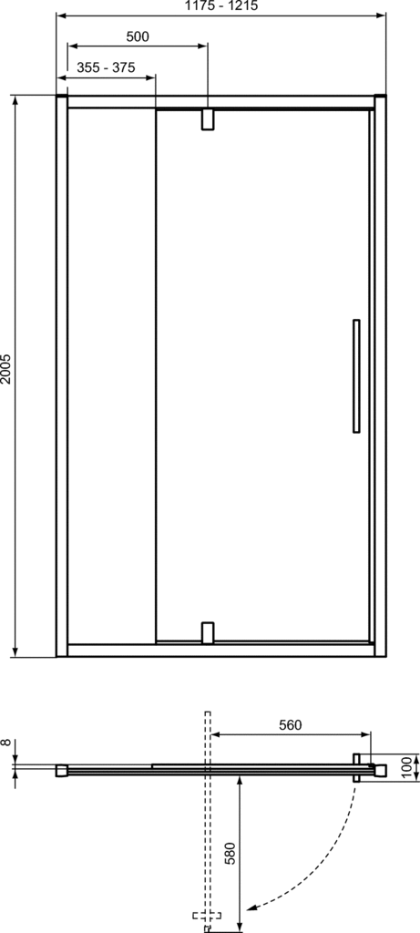 Drzwi uchylne otwierane na zewnątrz z panelem bocznym. Wykonane z bezpiecznego transparentnego szkła 8 mm z powłoką Ideal Clean zabezpieczającą przed osadzaniem się kamienia. Profile aluminiowe o grubości 1,2 mm. Rozciągliwość 20 mm na profil. Uchwyt ze stali nierdzewnej 300 mm. Przeznaczony do montażu we wnęce (ściana do ściany) lub w narożniku (z panelem bocznym typu L). Do montażu z brodzikami Ideal Standard lub bezpośrednio na płytkach. Wszystkie produkty z linii są odwracalne. Więcej informacji oraz rekomendowanych rozwiązań znajduje się w katalogu lub cenniku.