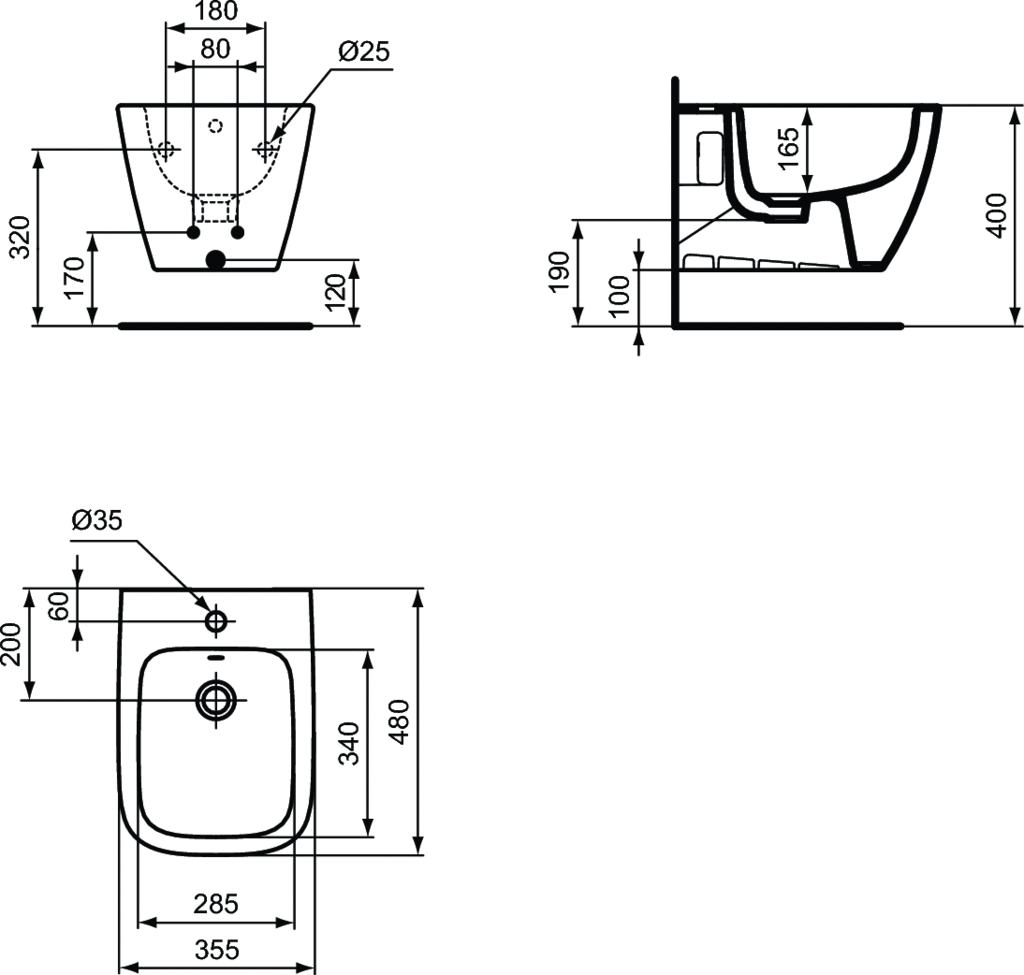Bidet kompaktowy Ideal Standard i.life S wiszący (krótki wysięg) - tylko 48 cm, z 1 otworem na baterię. Zestaw montażowy TT0299598 w komplecie (dla całkowicie ukrytego mocowania - bez bocznych otworów).