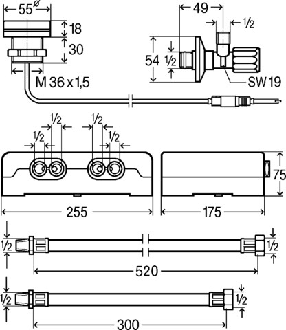 Multiplex Trio E2-armatura, elektroniczna jednostka mieszająca. Przeznaczenie: napełnienie wanny (za pomocą elektronicznego sterowania), w połączeniu z Multiplex Trio, Multiplex Trio F, Rotaplex Trio lub Rotaplex Trio F (napęd elektryczny), z możliwością dodatkowego domówienia: Multiplex Trio E-moduł WLAN nr wzoru 6146.224, elektryczne otwieranie/zamykanie kompletu odpływowego Viega, zdalnie sterowany za pomocą urządzeń mobilnych (Android, iOS, Windows) przy połączeniu bezpośrednim lub przez Internet z modułem E-WLAN Multiplex Trio. Wyposażenie: 2 chromowane jednostki regulujące, funkcja zapamiętywania temperatury, ilości dopływu wody oraz napełnienia, 3 indywidualne ustawienia wstępne użytkownika, dopływ wannowy – ręczne przestawianie funkcji baterii wannowej i słuchawki prysznicowej, możliwość ręcznego zwolnienia blokady powyżej 38°C, węże przyłączeniowe elastyczne, zawory kątowe, zasilacz. Dane techniczne: napięcie zasilania 100–240 V AC/50–60 Hz, wg PN-EN 1111, nr wzoru 6146.2, nr kat. 682 972,