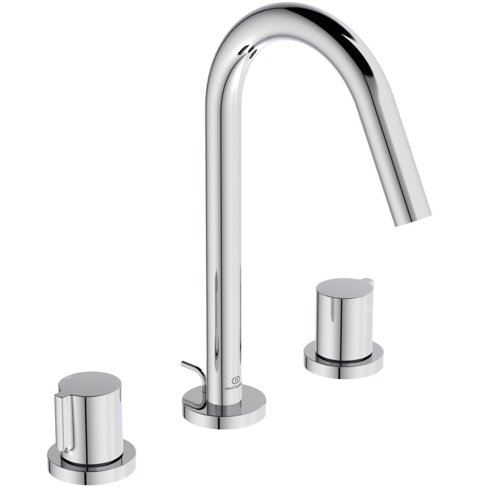 Głowica ceramiczna 28 mm z ogranicznikiem temperatury wody. Logo Ideal Standard umieszczone na korpusie wylewki. Metalowy uchwyt bez oznaczenia wody ciepłej i zimnej. Aerator typu Caché M16,5x1 z ogranicznikiem przepływu wody do 5 l/min. System montażu EASY-FIX. Wężyki przyłączeniowe G3/8". Metalowy korek automatyczny.
