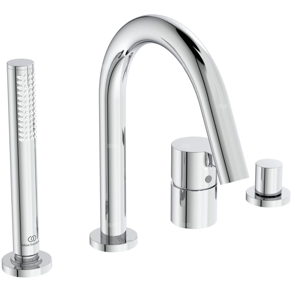 Głowica ceramiczna 38 mm z ogranicznikiem temperatury wody. Wylewka wannowa. Z akcesoriami: metalowa minisłuchawka, wąż natryskowy 150cm. Metalowy uchwyt bez oznaczenia wody ciepłej i zimnej. Automatyczny przełącznik wanna/natrysk. Aerator typu Caché M24x1i.