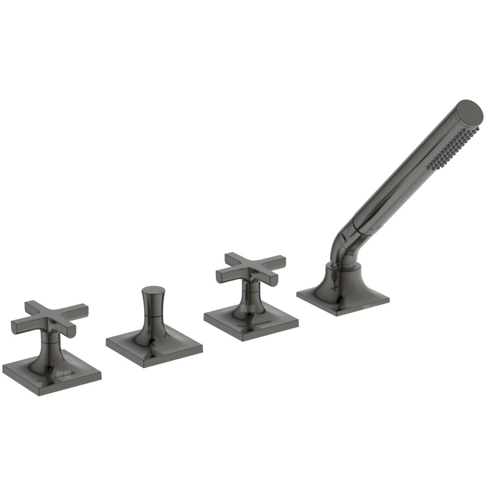 Bateria natryskowo-wannowa 4-otworowa, uchwyty krzyżowe.