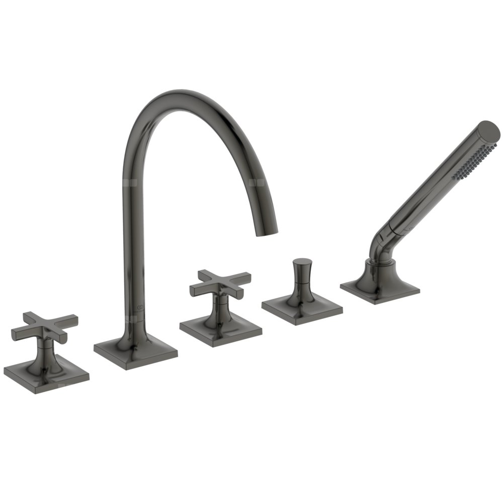 Bateria natryskowo-wannowa 4-otworowa, wylewka, uchwyty krzyżowe.