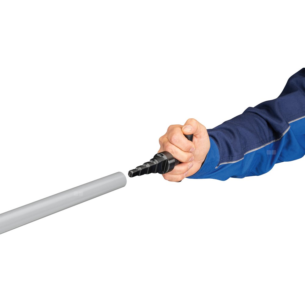 REMS KaliGrat R – jednoczesne kalibrowanie i gratowanie wewnętrzne. Uchwyt grzechotkowy ze stopniowanym trzpieniem kalibrującym ze zintegrowanymi ostrzami gratującymi. Uniwersalny w zastosowaniu do rur zespolonych do kalibracji po procesie cięcia, do gratowania wewnętrznego, aby zapobiec uszkodzeniu o-ringów złączek oraz do gratowania zewnętrznego. Zapewnia łatwą obsługę i szybki posuw dzięki ergonomicznemu uchwytowi z tworzywa sztucznego z funkcją grzechotki. Wytrzymałe wykonanie ze stali trzpienia kalibrującego ze zintegrowanymi ostrzami do gratowania do dużych obciążeń i o dużej żywotności. Stopniowany trzpień kalibrujący i ostrza do gratowania są przeznaczone do rur o różnych średnicach i grubościach ścianki.