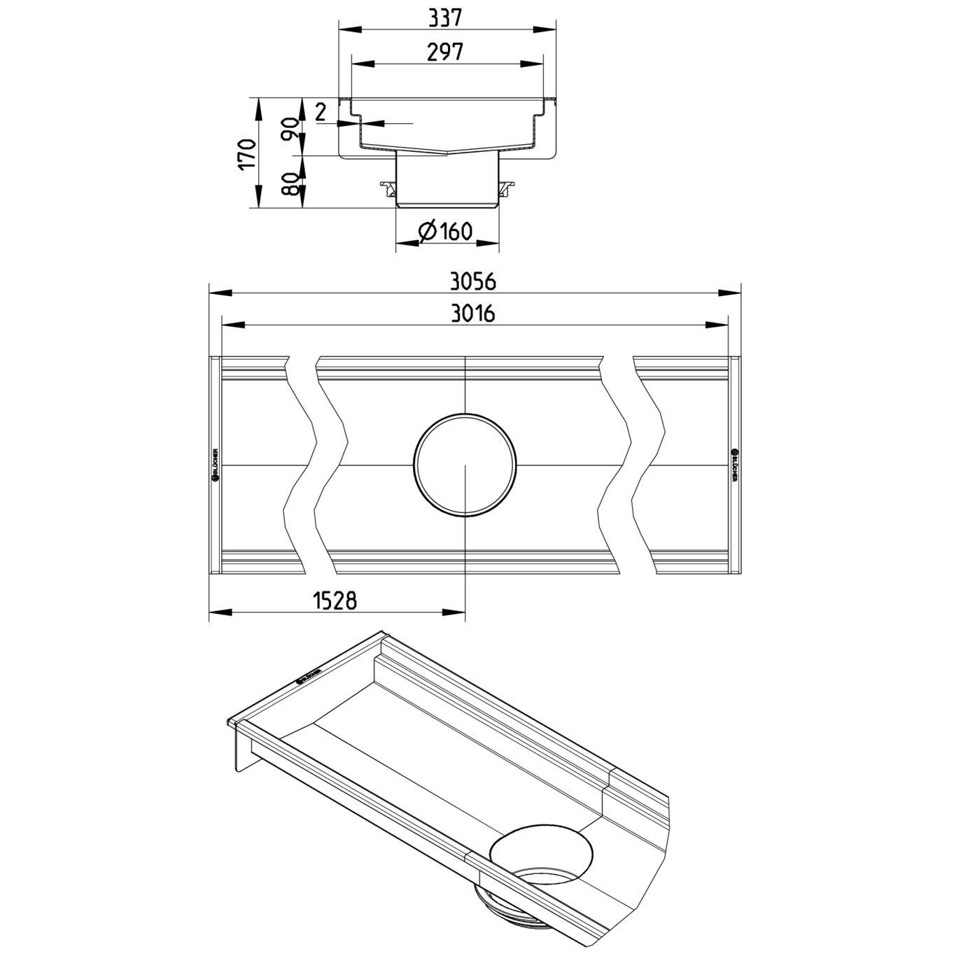 Kanał 300x3000 odpływ na środku DN 160 wymiar zewn. 337mm x3056 mm