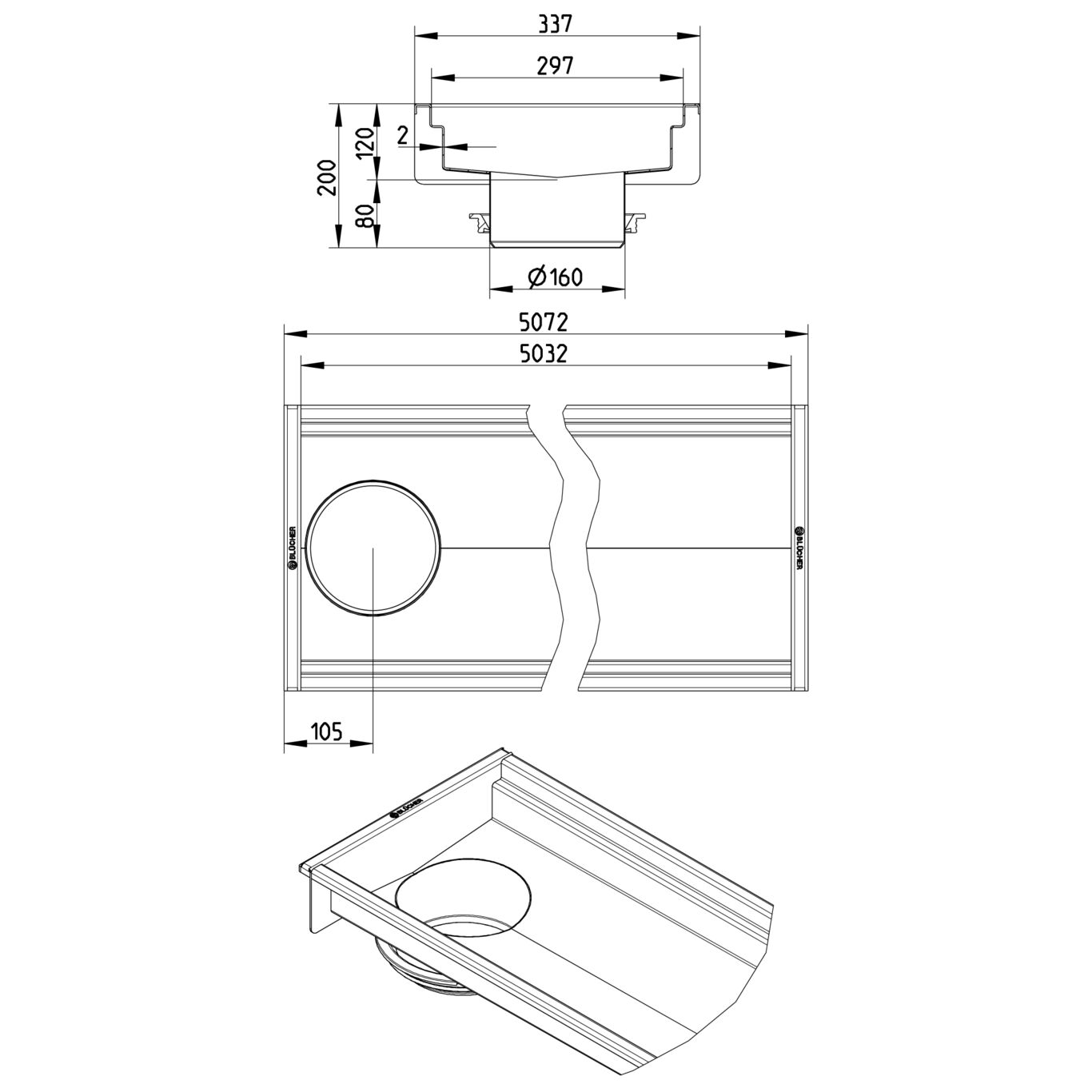 Kanał 300x5000 odpływ na końcu DN 160 wymiar zewn. 337mm x5072 mm