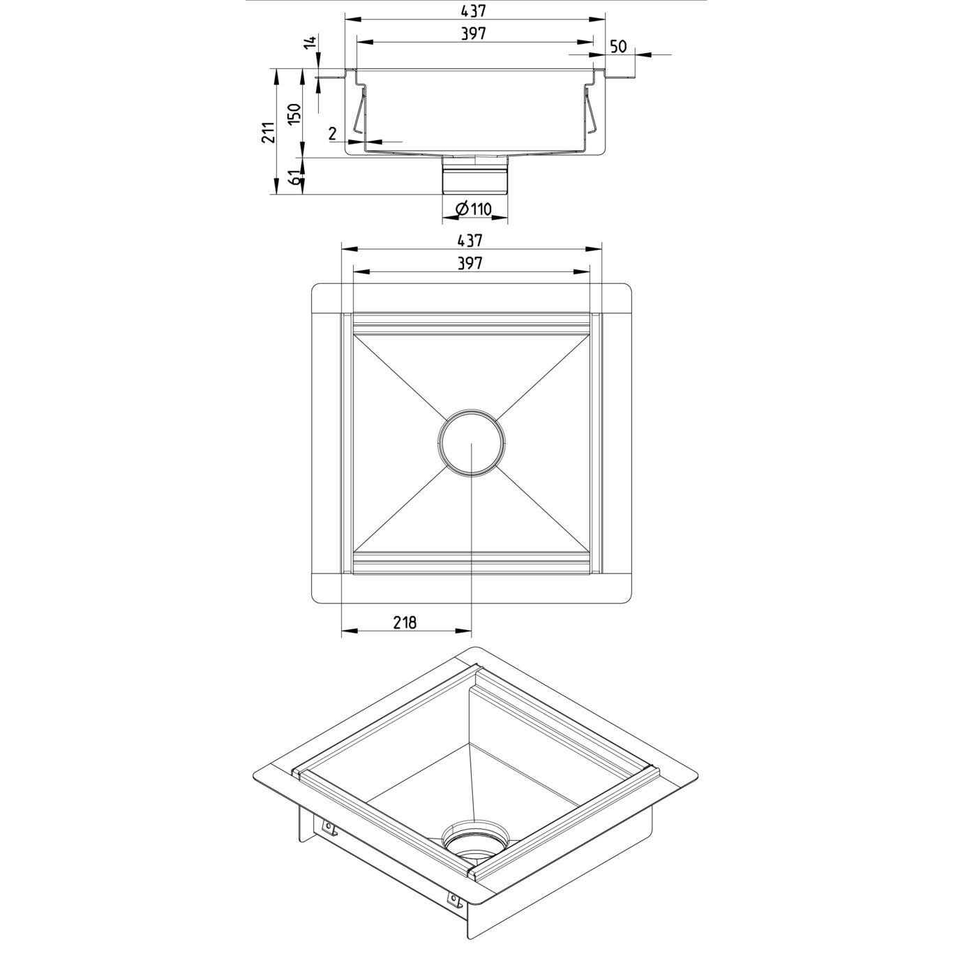 Kanał kuchenny 400x400 odpływ DN 110, z kołnierzem do podłóg z izolacją wylewaną, wys. wewn. 60 mm