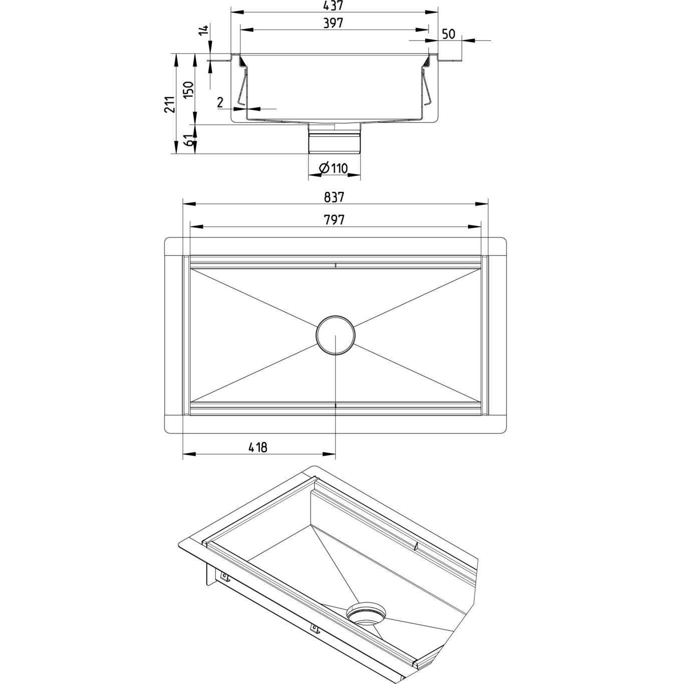 Kanał kuchenny 400x800 odpływ DN 110, z kołnierzem do podłóg z izolacją wylewaną, wys. wewn. 60 mm