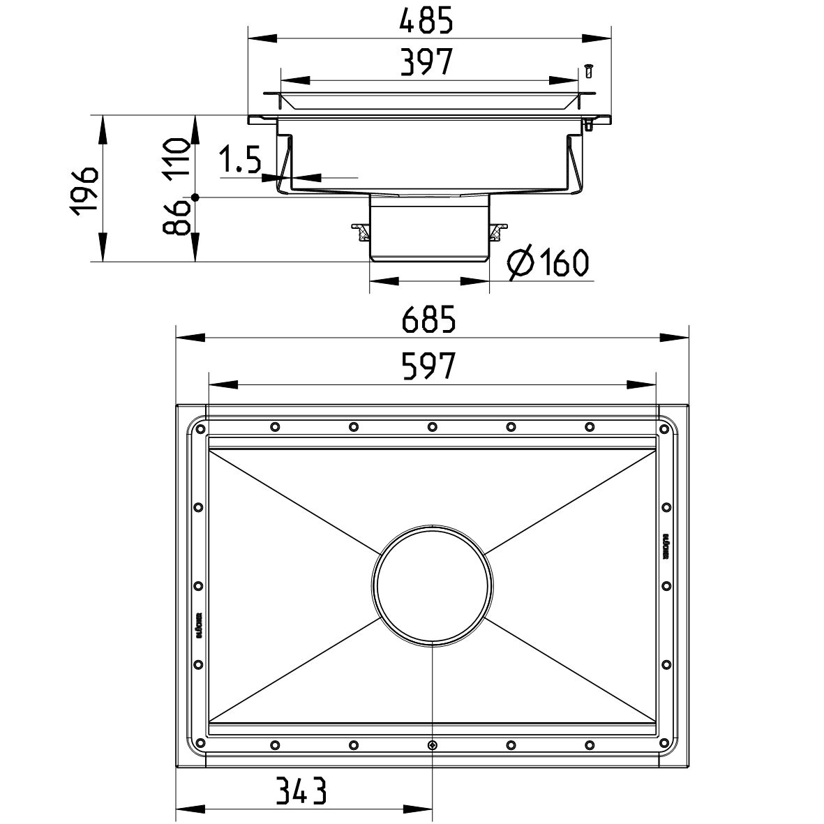Kanał kuchenny do winylu 400x 600 odpływ DN 160, wys. wewn.110 mm