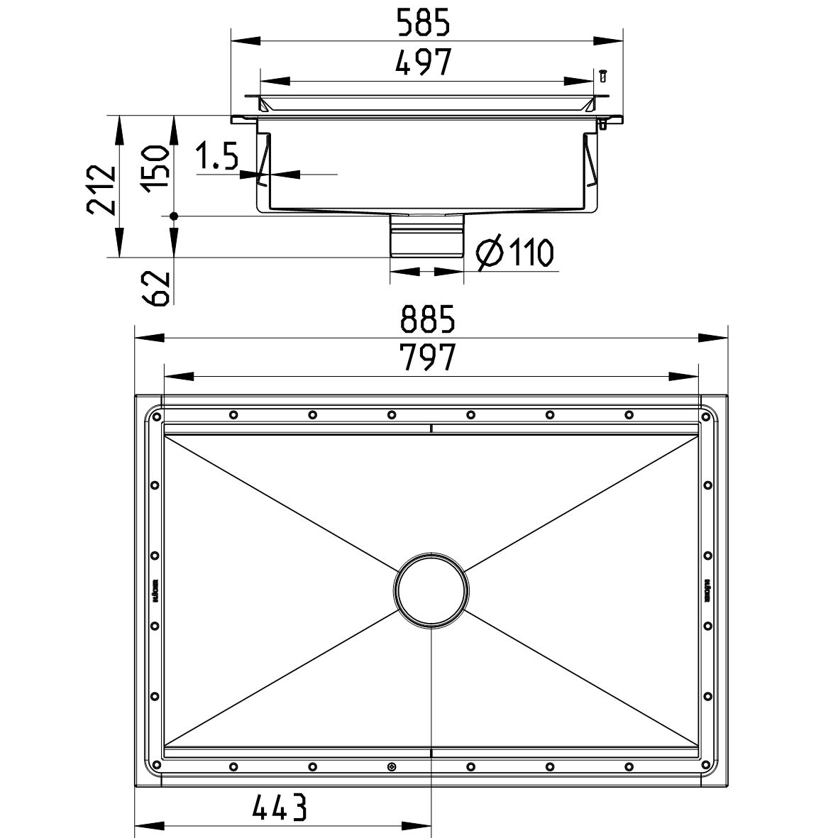 Kanał kuchenny do winylu 500x800 odpływ fi 110, wys. wewn. 150 mm