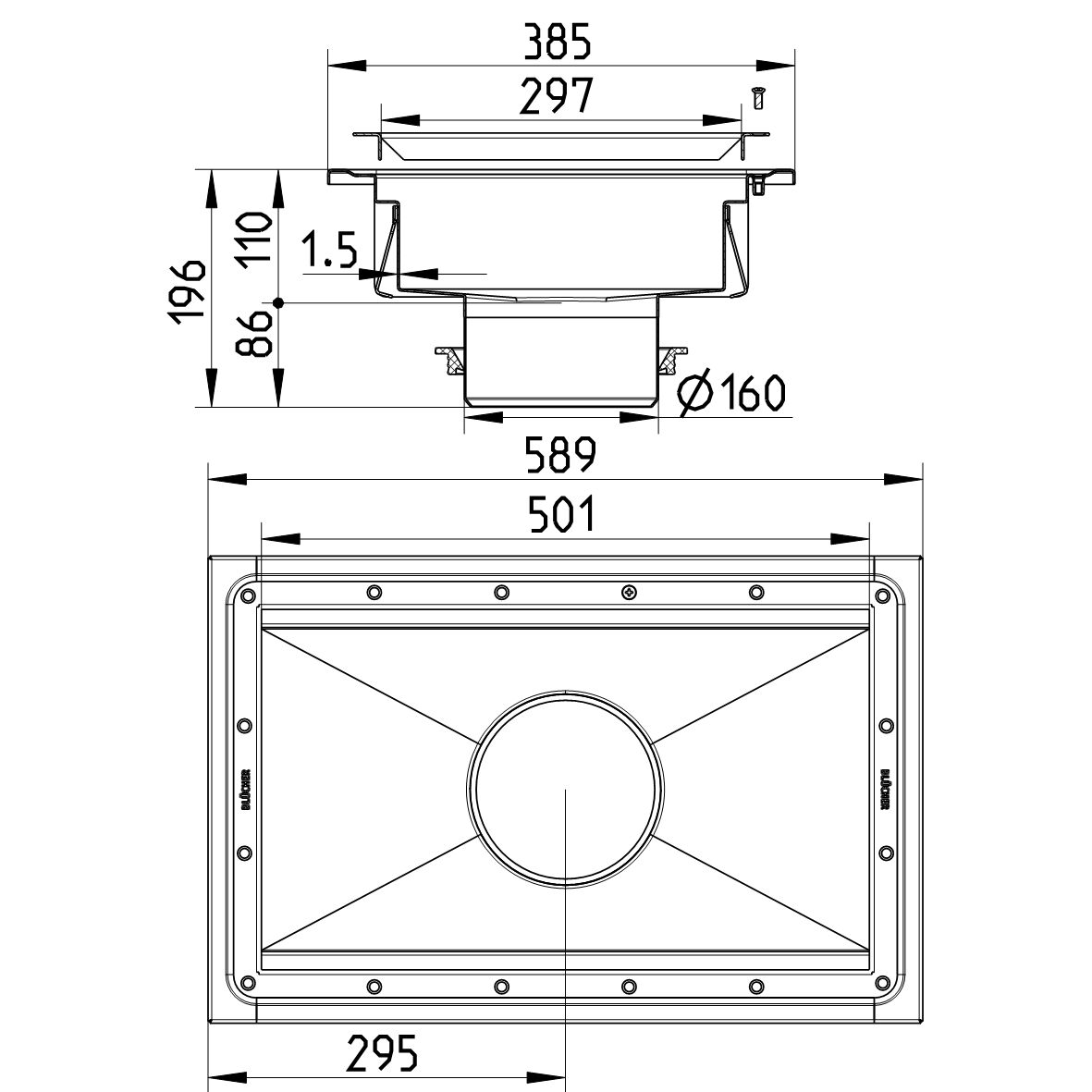 Kanał kuchenny do winylu DN 300 odpływ DN 161
