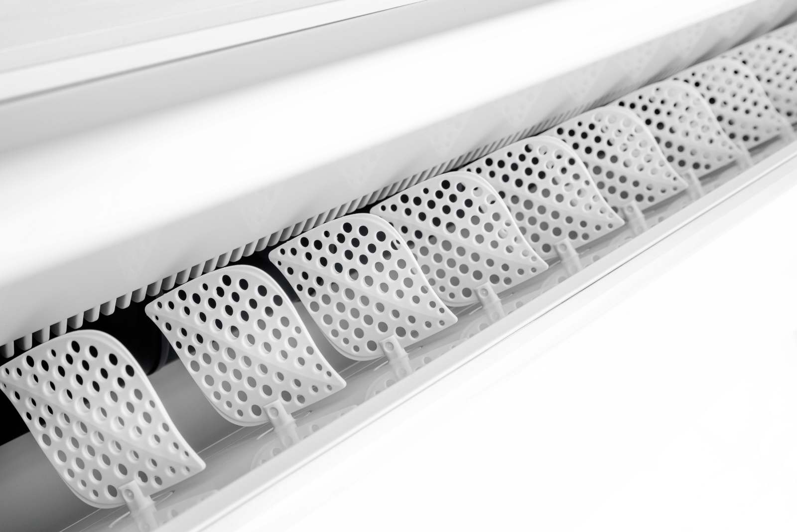 Oczywiście wszystkie żaluzje są sterowane automatycznie za pomocą pilota ale żaluzja pozioma dodatkowo pracuje w 2 płaszczyznach, dzięki czemu jesteśmy w stanie regulować kierunek nawiewanego powietrza w zakresie 180o góra-dol. Taka możliwość sterowania żaluzjami pozwala nam w trybie chłodzenia ustawić żaluzje idealnie w poziomie, unikając nawiewu bezpośrednio na osoby przebywające blisko klimatyzatora. Natomiast w trybie grzania ustawiając żaluzję w pionie poprawiamy dystrybucje ciepłego powietrza w pomieszczeniu i zwiększamy odczuwalny komfort cieplny.