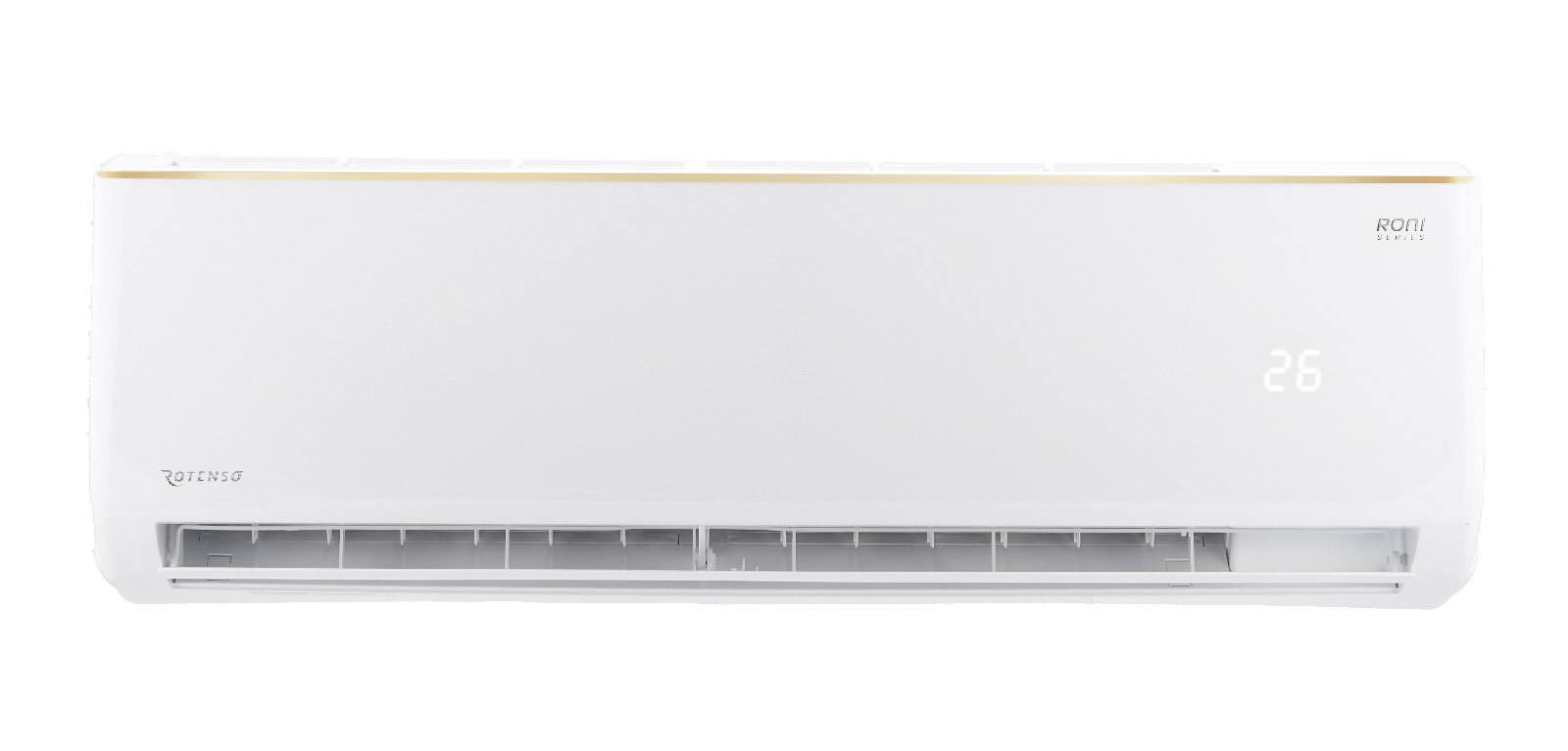 Roni to popularna jednostka w gamie Rotenso®, w klasie chłodzenia A++. Klimatyzator wydajnie rozprowadza powietrze dzięki szerokiemu zakresowi nawiewu oraz systemowi automatycznego nawiewu 4D eMOTO. Umożliwia on sterowanie pracą żaluzji pionowych i poziomych za pomocą pilota bezprzewodowego.Klimatyzator Roni z serii X jest wyposażony w filtr elektrostatyczny HD iAIR oraz 2 filtry typu 3 w 1 /katechinowy + Silver Ion + witamina C/ i / fotokatalityczny + aktywny węgiel, Cold Nano/.Roni posiada wszystkie niezbędne funkcje przydatne w codziennym użytkowaniu klimatyzatora, takie jak: programator czasowy, tryb super cichy, tryb snu, czy też tryb turbo.Wszystkimi funkcjami sterujemy za pomocą estetycznego pilota lub poprzez aplikację za pomocą smartfona. Roni z nowej serii X już w wyposażeniu standardowym posiada modem WiFi.