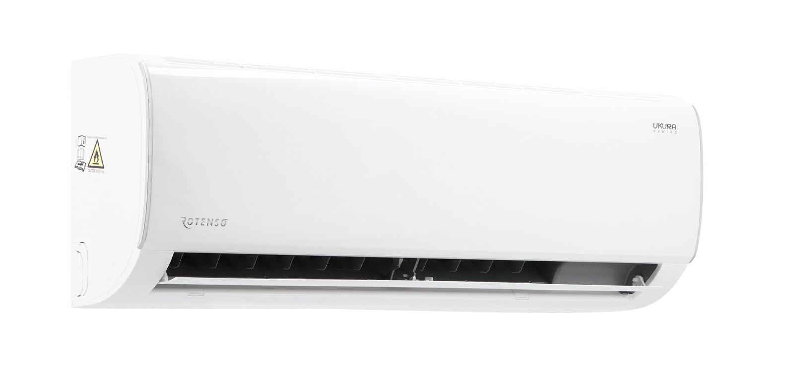 Klimatyzator Rotenso® Ukura to urządzenie o kompaktowej budowie z nowoczesnymi zaokrągleniami panelu frontowego, wzbogaconymi o delikatne, srebrne wykończenia. Jest to ekonomiczna jednostka o wysokiej klasie energooszczędności chłodzenia A++.