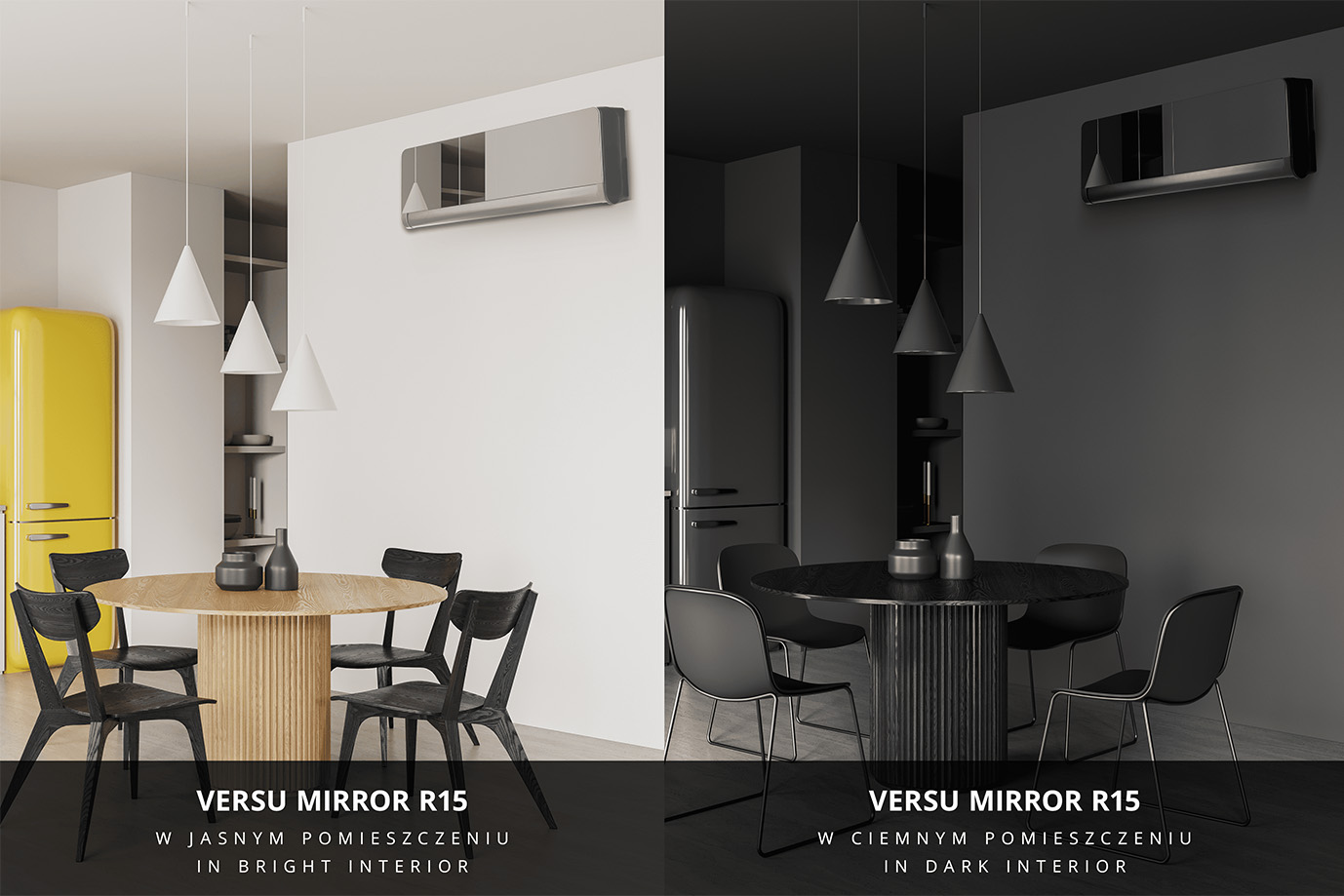 Nowy Versu Mirror R15 posiada najwyższe klasy wydajności energetycznej chłodzenia A+++ (SEER 8,8) i ogrzewania A++ (SEER 4,6).