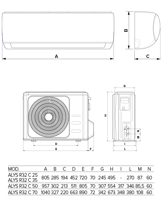 Klimatyzator split zestaw ARISTON ALYS R32 C 35 MUD0 jednostka wewnętrzna i zewnętrzna 3,4 kW