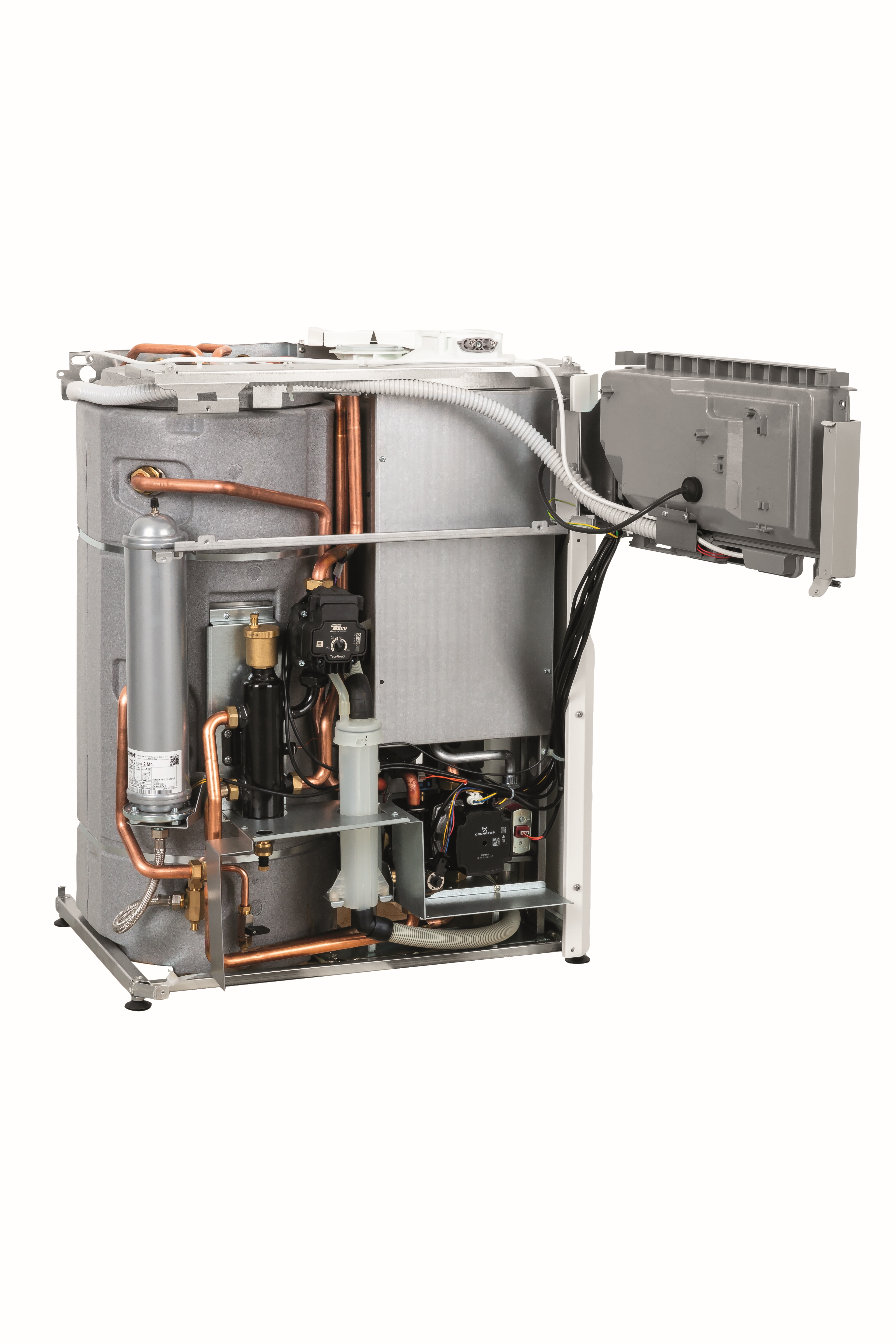 Kocioł kondensacyjny, stojący z wbudowanym zasobnikiem c.w.u. 54 l ze stali nierdzewnej. Szeroki zakres modulacji mocy: od 2,8 do 28,2 kW . Możliwość zarządzania z poziomu panelu kotła 3 strefami grzewczymi z programowaniem tygodniowym (przy zastosowaniu rozdzielacza hydraulicznego DIM oraz opcjonalnych bezprzewodowych sond temp. pokojowej).