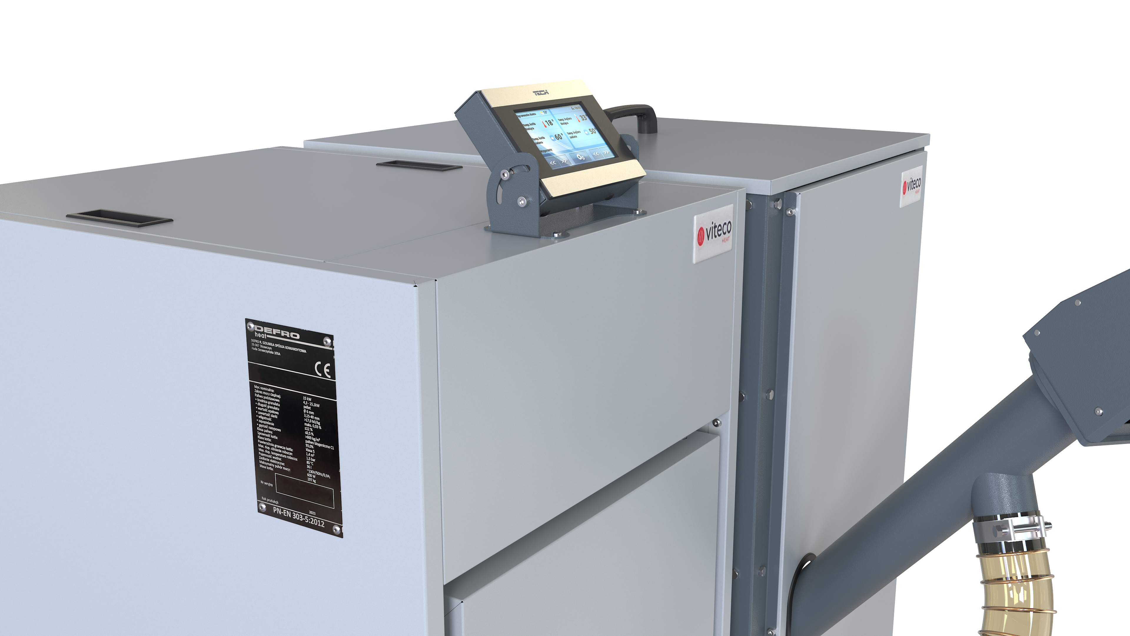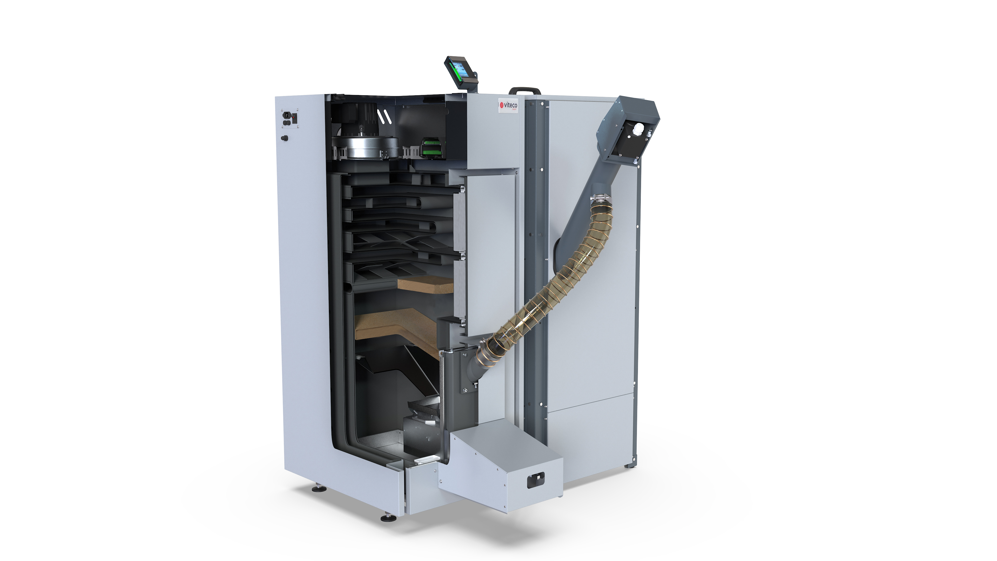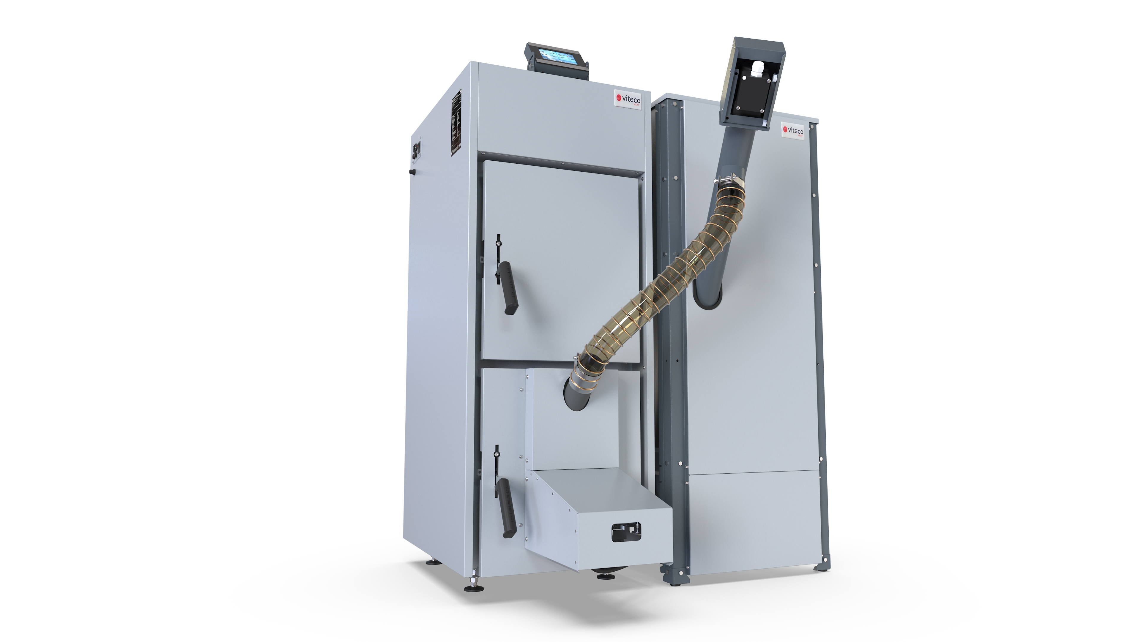 Kocioł na pellet VITECO HEAT NextPell Plus z palnikiem samoczyszczącym Defro zamontowanym od frontu 12 kW z zasobnikiem o pojemności 235 l