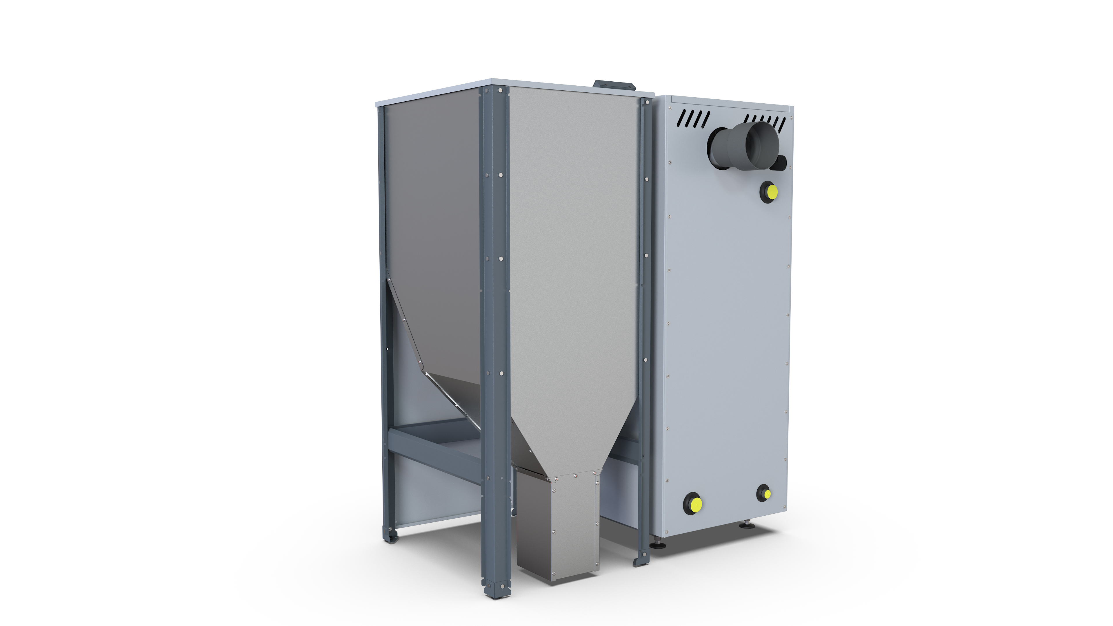 Konstrukcja zasobnika na pellet umożliwia jego u stawienie tak z lewej, jak i z prawej strony kotła.