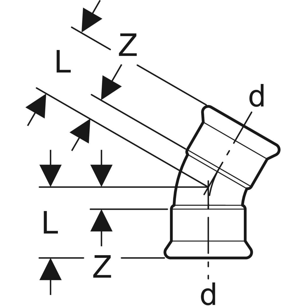 Kolano 30' GEBERIT Mapress Edelstahl, stal nierdzewna, 28 mm, DN 25 x 28 mm x DN 25 (mufa zaprasowywana x mufa zaprasowywana), (głębokość: 18 mm) z uszczelką