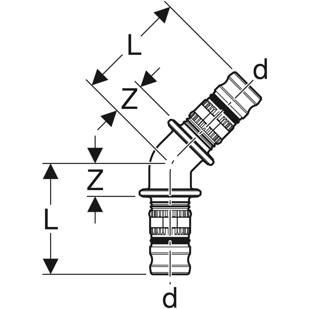 Kolano 45' GEBERIT Mepla, PVDF / PVDF, 63 mm, DN 50 x 63 mm x DN 50 (końcówka wciskowa x końcówka wciskowa), (głębokość: 28 mm) z uszczelką