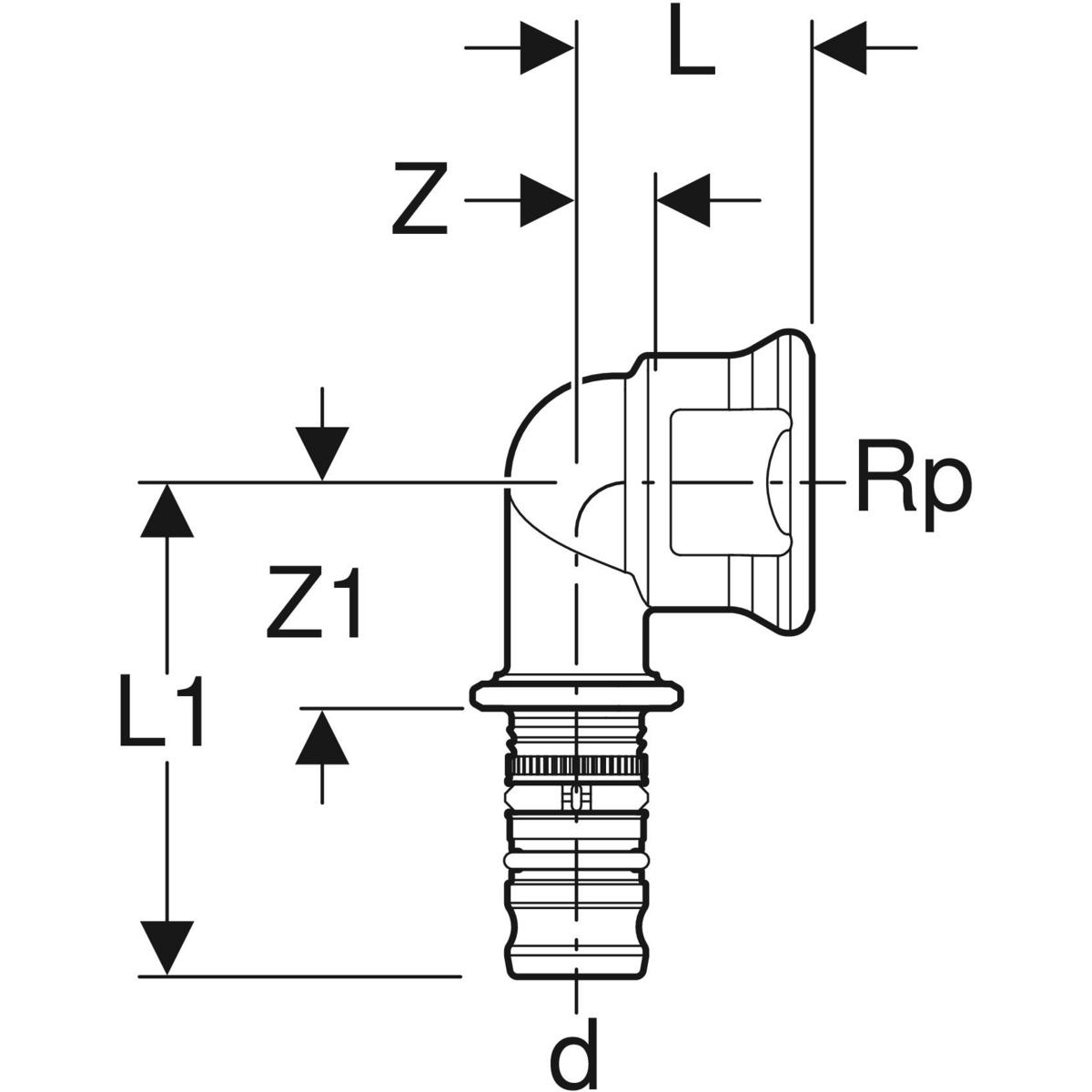 Kolano 90' GEBERIT Mepla, mosiądz / mosiądz, 3/4'' x 26 mm (GW x końcówka wciskowa), (głębokość: 29 mm) z uszczelką