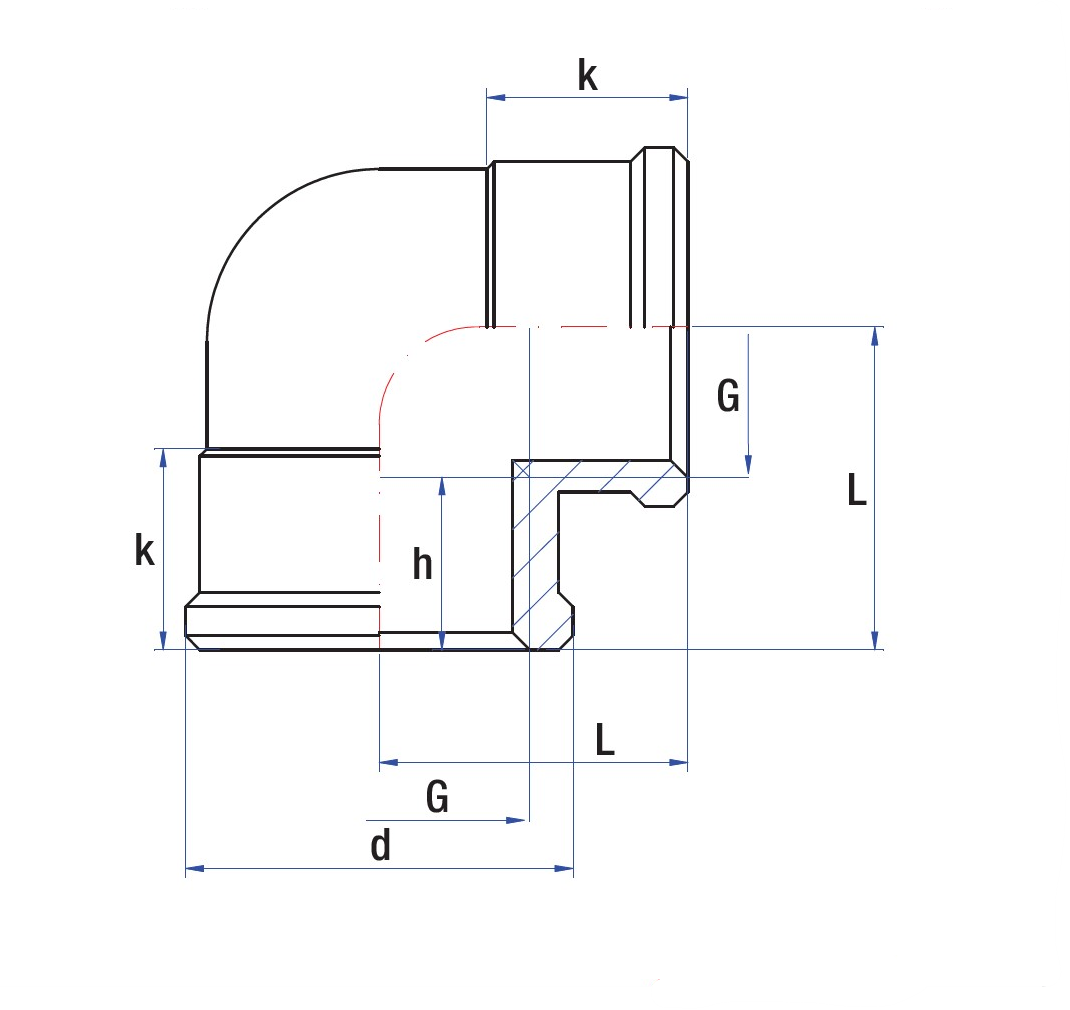 Kolano 90' RUMET mosiądz 1 1/4'' x 1 1/4'' (GW), 41 mm
