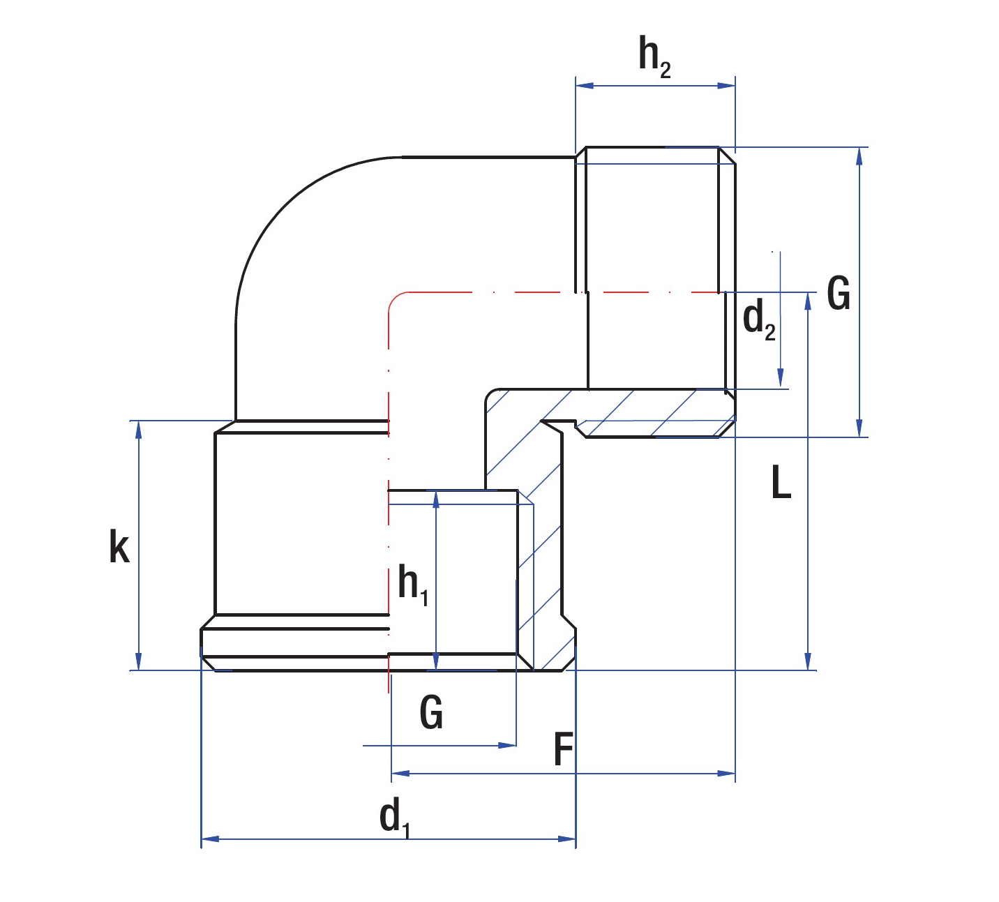 Kolano 90' RUMET mosiądz 1/2'' (GW x GZ), 27,5 mm