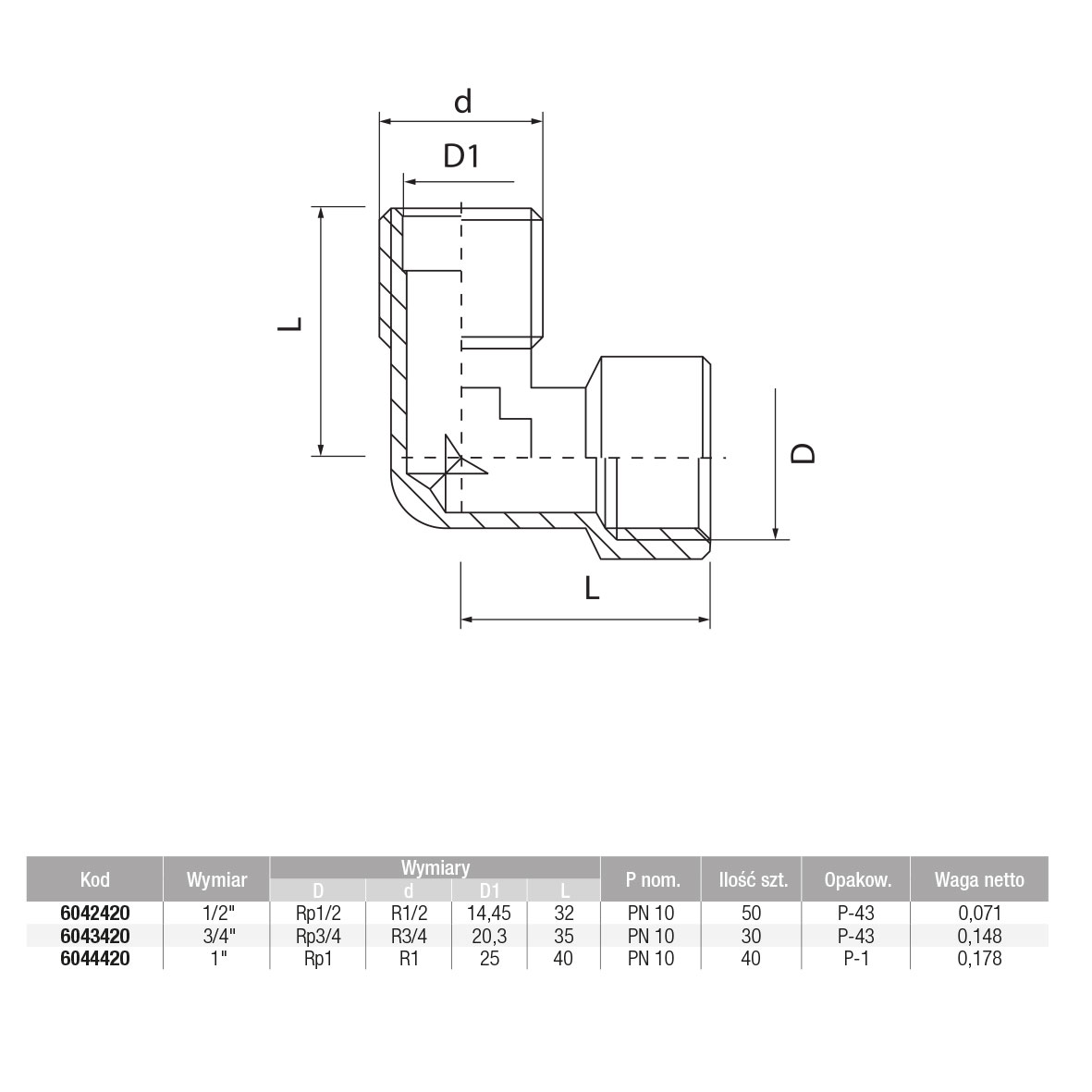 Kolanko wkrętne śrutowane V-PEX 1/2