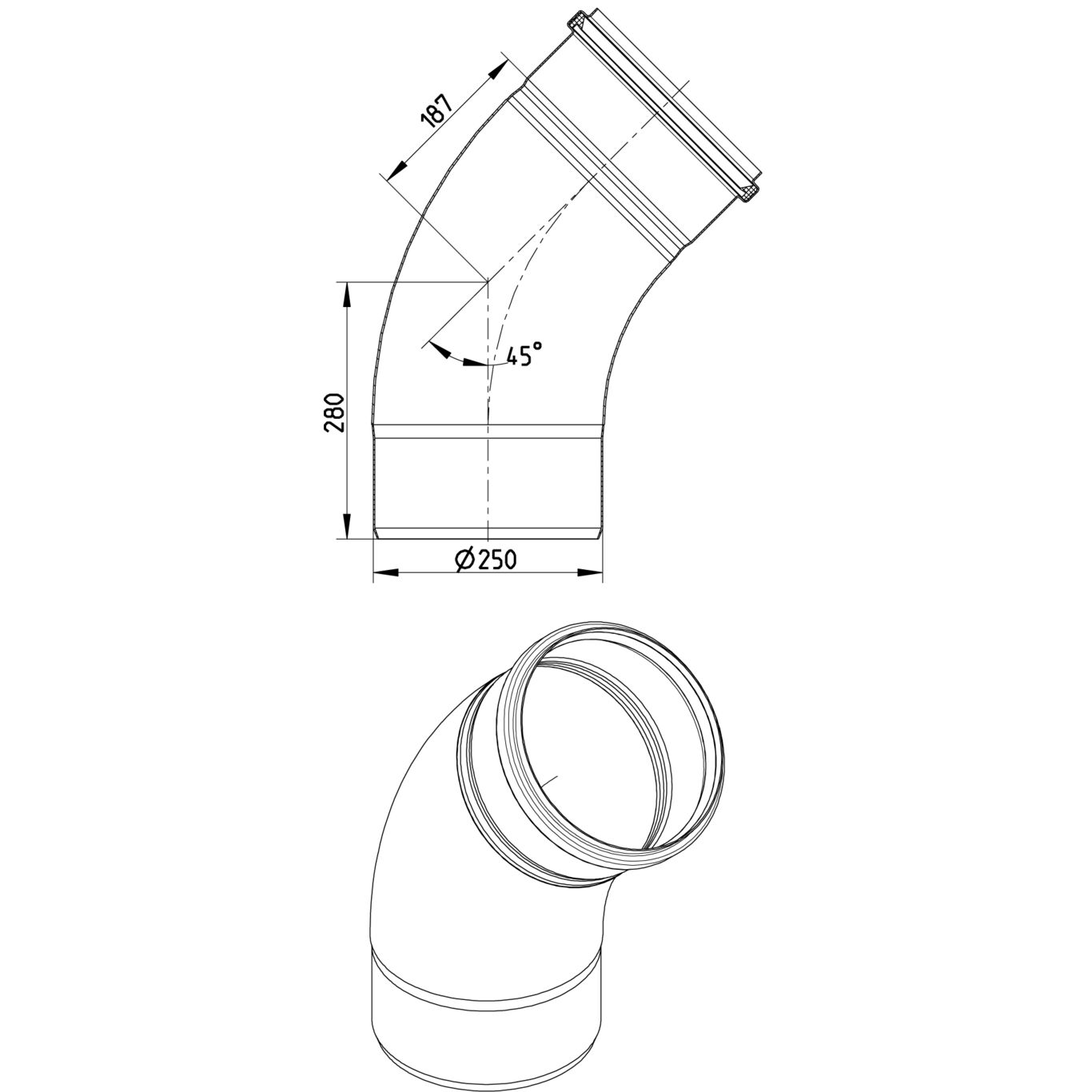Kolano długi promień 45 st., DN =250mm, stal kwasoodporna