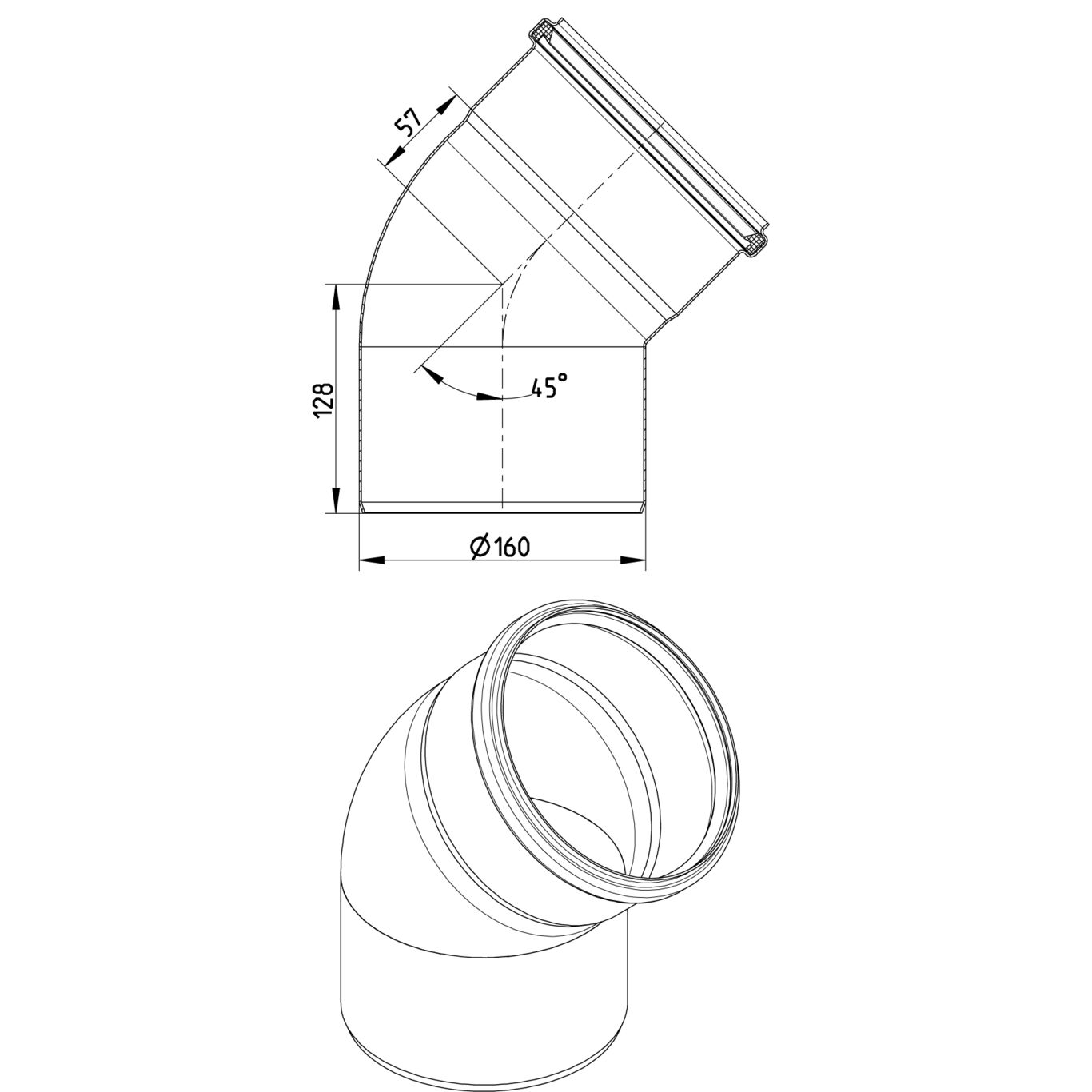 Kolano DN =160 mm, stal kwasoodporna 45 st.
