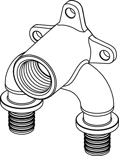 Podwójne kolano naścienne z brązu do łączenia rur TECEflex ze złączkami gwintowanymi lub armaturą z gwintem zgodnie z normą PN-EN 10226, montaż rur TECEflex za pomocą tulei zaciskowych, bez dodatkowych pierścieni uszczelniających typu O-ring. Złączka optymalizująca opór przepływu (wartość dzeta). Odpowiednie do każdej jakości wody pitnej. Bez tulei zaciskowych TECEflex.