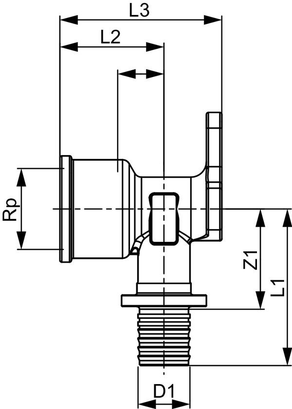 Kolano naścienne 90' TECE flex, mosiądz, 14 mm x 1/2'' (zz x GW)
