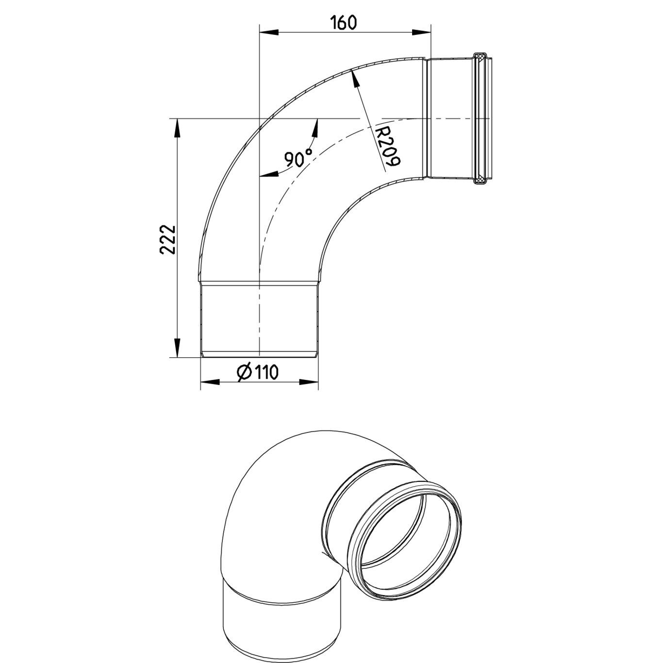 Kolano, średni promień 90 st., DN =110mm, stal kwasoodporna