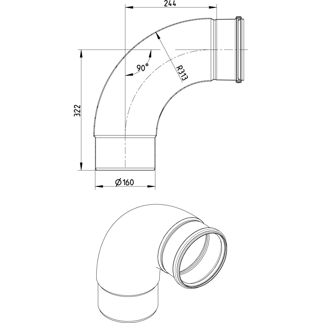 Kolano, średni promień 90 st., DN =160mm, stal kwasoodporna