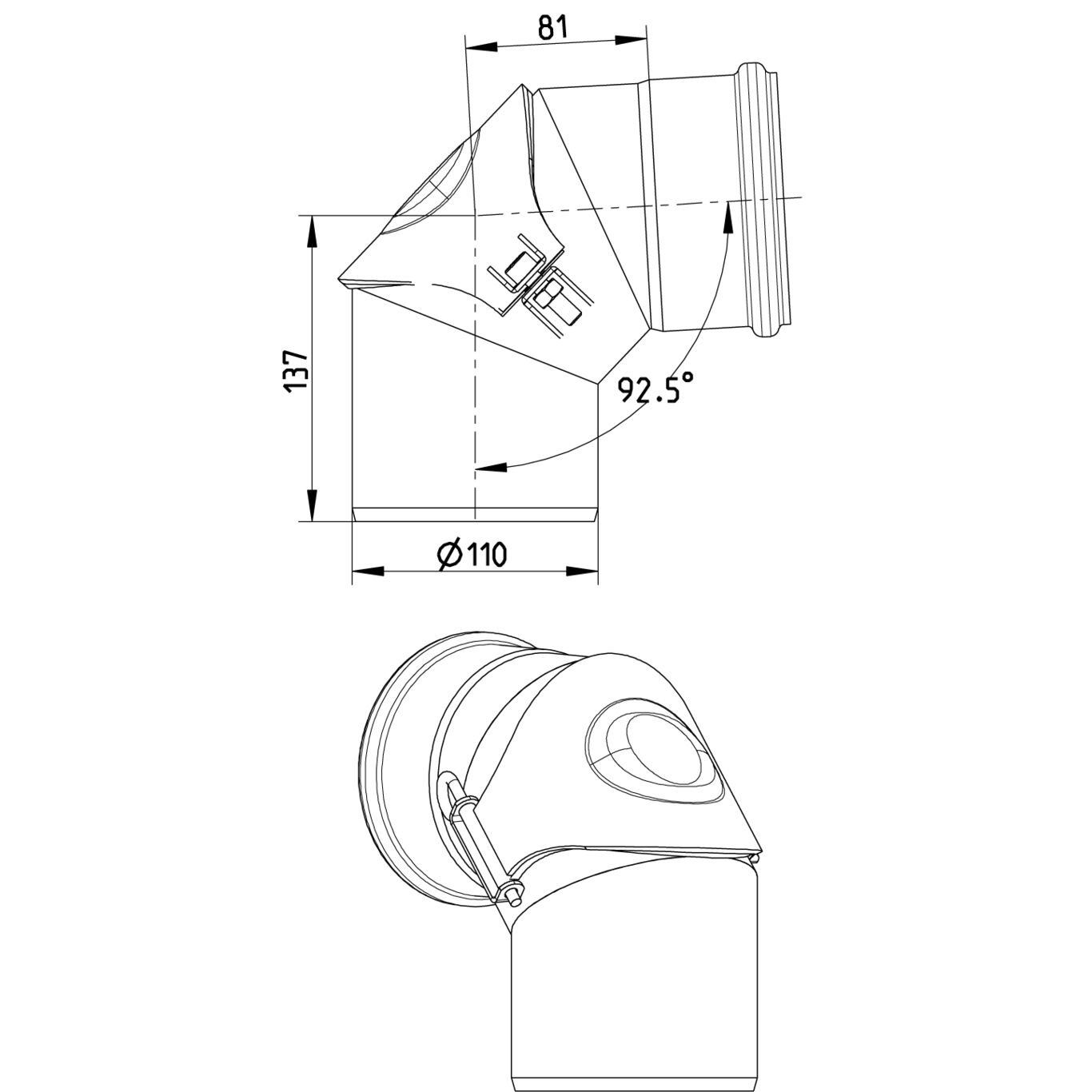 Kolano z rewizją 87,5 st. DN =110 mm, stal kwasoodporna
