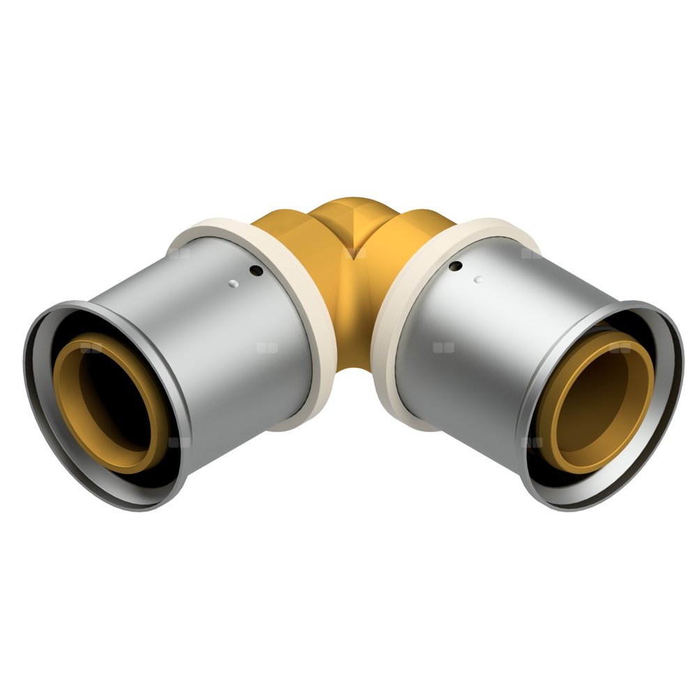 Kształtka zaprasowywana wykonana z kutego mosiądzu, wyposażona w 3 o-ringi wykonane z EPDM oraz kompozytowy pierścień z oknami kontrolnymi do średnicy 32 mm, tuleja tłoczona ze stali nierdzewnej. Do łączenia rur wielowarstwowych QIK® PE-RT II/AL/PE-RT II. Zaprasowywanie: średnice 16-32 mm szczęki o profilu H, TH, U, średnice 40-75 mm szczęki o profilu U.