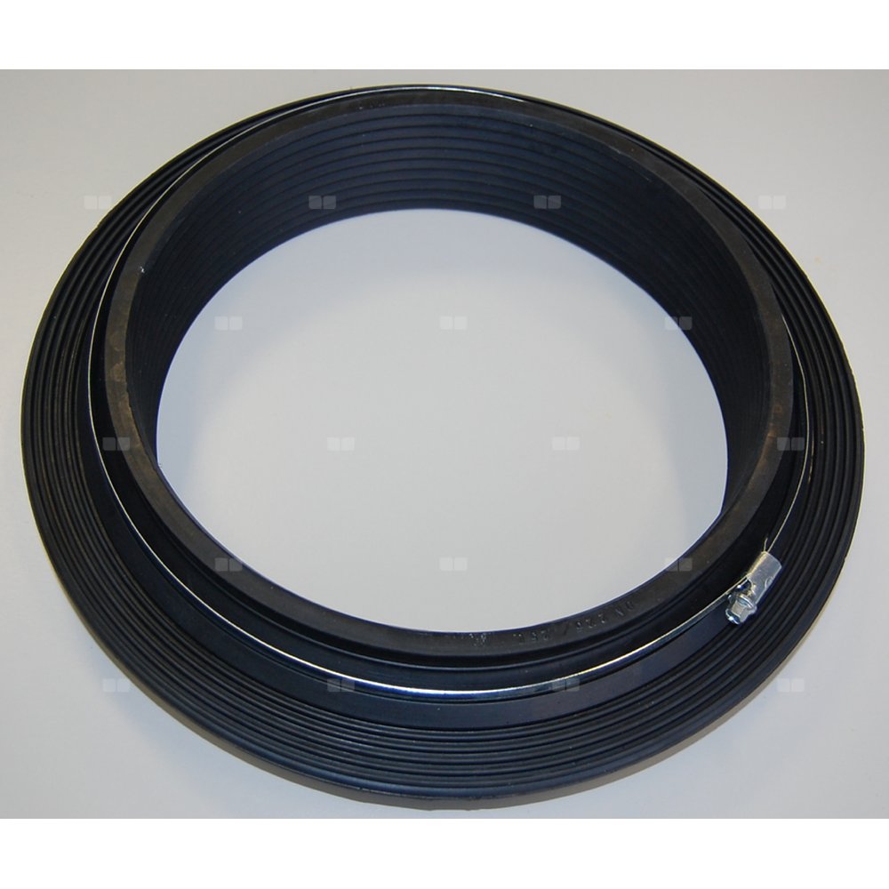 Manszeta do zabezpieczenia płyty podstawy przed przedostawaniem się wody gruntowej, z odpornymi na korozję obręczami naprężającymi.