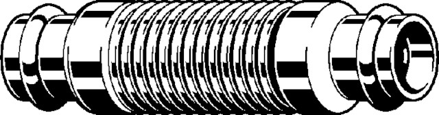 Kompensator, z SC-Contur. Przeznaczenie: kompensacja wydłużeń przewodów przyłączeniowych i przewodów pionowych, instalacje przyłączeniowe na poszczególnych piętrach w instalacjach grzewczych i sanitarnych, przyłącza zaprasowywane. Wyposażenie: Elementy uszczelniające EPDM, złączki zaprasowywane z brązu lub brązu krzemowego, mieszek falisty ze stali nierdzewnej, nr wzoru 2251, nr kat. 690 274, d: 22