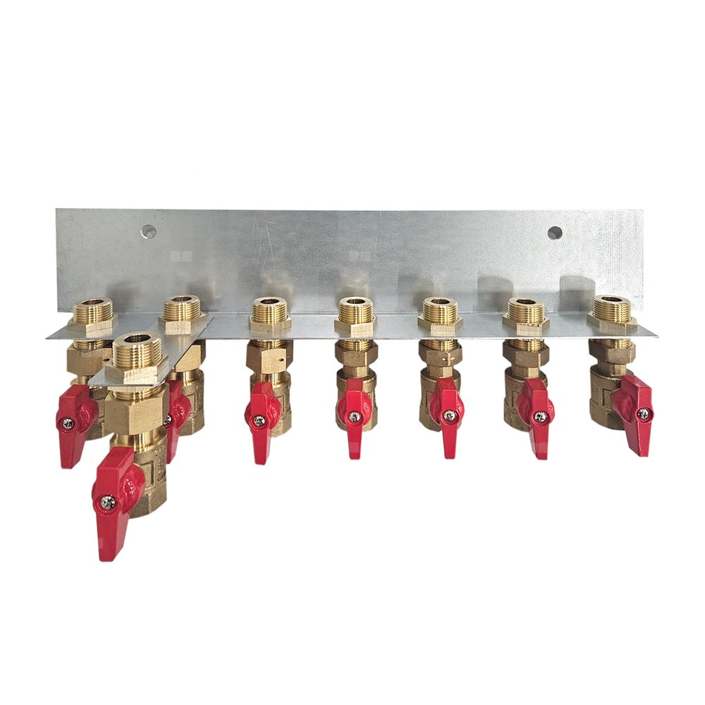 Konsola montażowa prosta z zaworami kulowymi 3/4" GW i króćcem cyrkulacyjnym, przeznaczona do montażu naściennego. Produkt ułatwia obsługę i umożliwia odcięcie stacji Logoterma Uran bez żadnych dodatkowych akcesoriów. Konsola dedykowana do stacji mieszkaniowych wyposażonych w cyrkulację c.w.u.
