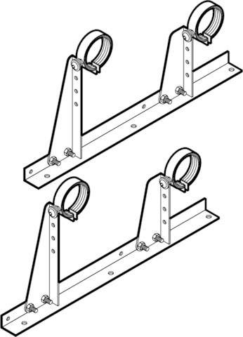 Konsola montażowa. Przeznaczenie: ogrzewanie powierzchniowe Fonterra. Zastosowanie: rozdzielacze przemysłowe DN40 nr wzoru 1007, stal ocynkowana. Wyposażenie: Obejmy do rur, dźwiękochłonna wkładka izolacyjna, nr wzoru 1299, nr kat. 613 082, ilość w zestawie: 2