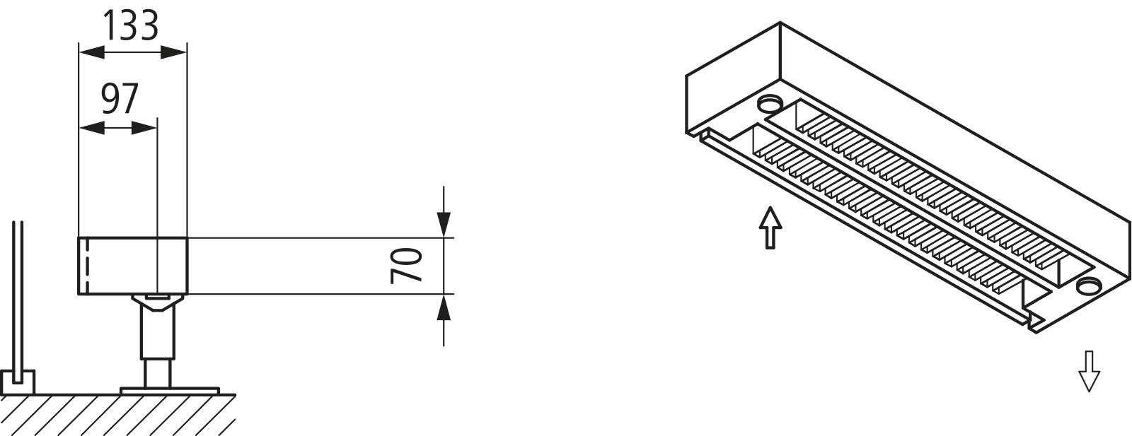 Specjalna osłona przeciw wypromieniowaniu ciepła montowana jest na tylnej ścianie konwektora. Uniemożliwia ona promieniowanie ciepłego powietrza w stronę przeszklonej powierzchni i dzięki temu zmniejsza stratę ciepła aż do 80%.