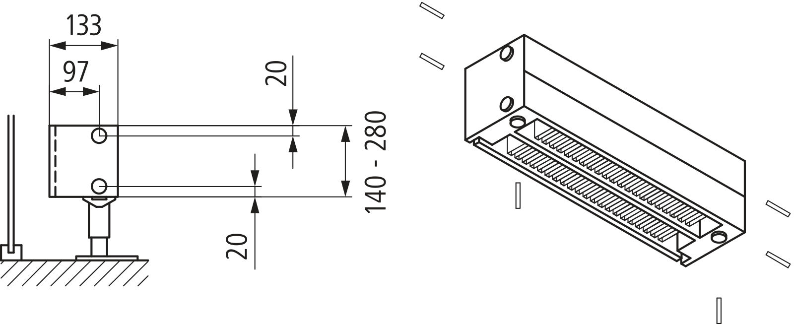Konwektor Kermi Kon m. Str. Typ22 BH280x133x1400mm QN1554,weiß,6bar, m. Abd., AB Uni.