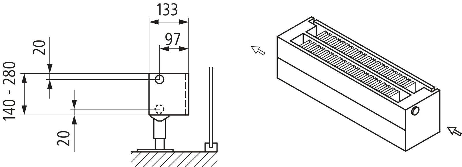 Specjalna osłona przeciw wypromieniowaniu ciepła montowana jest na tylnej ścianie konwektora. Uniemożliwia ona promieniowanie ciepłego powietrza w stronę przeszklonej powierzchni i dzięki temu zmniejsza stratę ciepła aż do 80%.