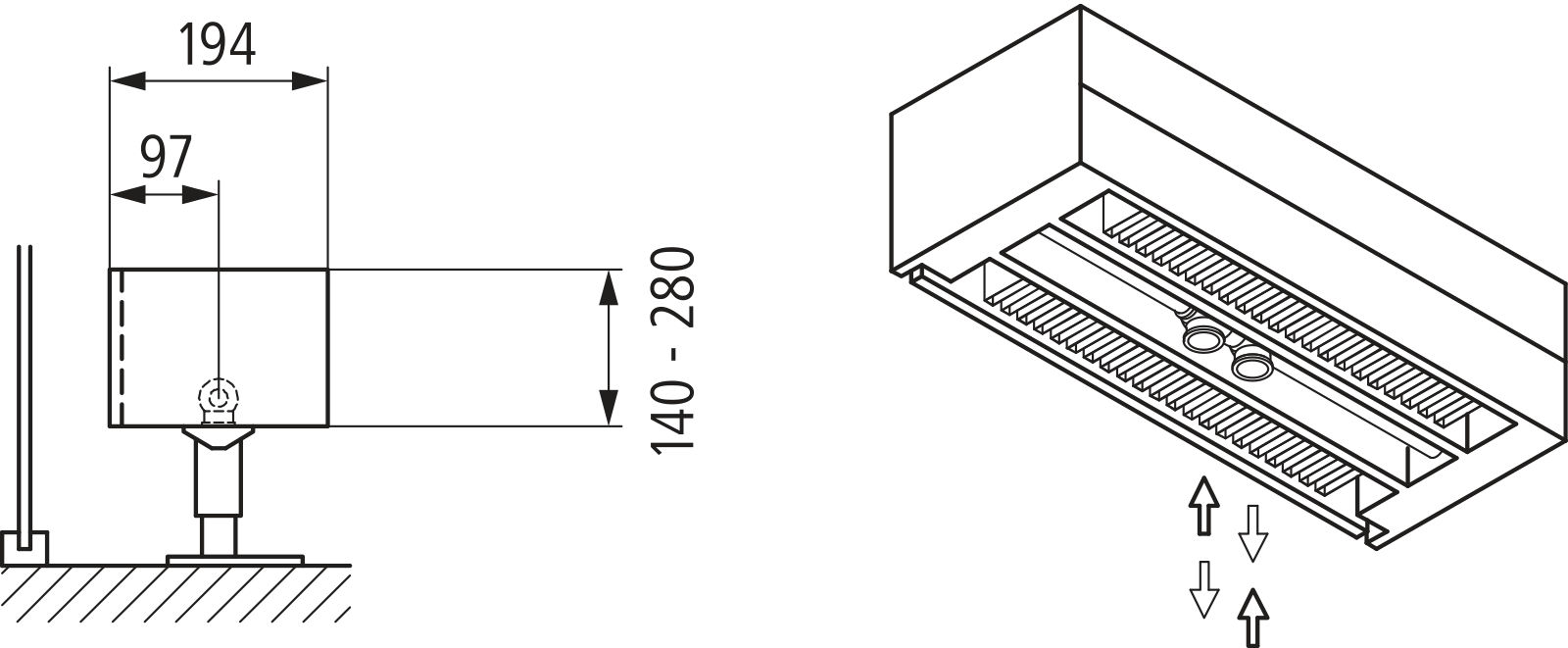 Specjalna osłona przeciw wypromieniowaniu ciepła montowana jest na tylnej ścianie konwektora. Uniemożliwia ona promieniowanie ciepłego powietrza w stronę przeszklonej powierzchni i dzięki temu zmniejsza stratę ciepła aż do 80%.