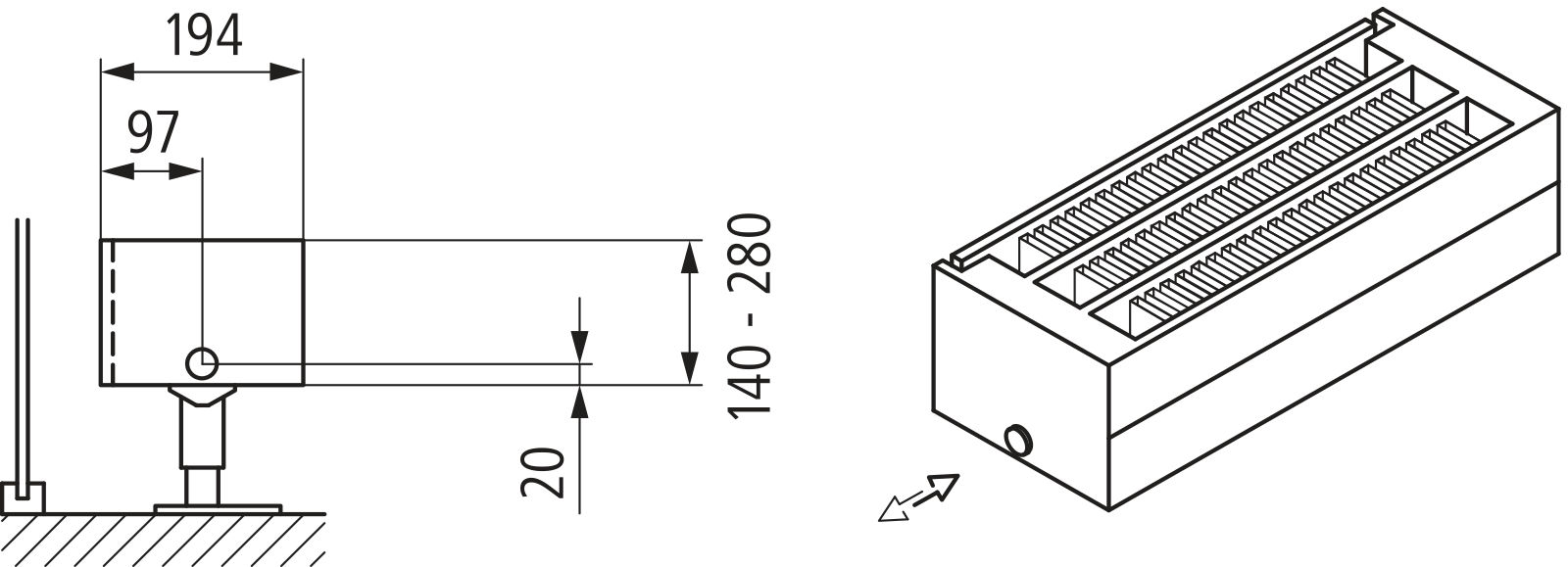 Konwektor Kermi Kon m. Str. Typ33 BH140x194x3600mm QN4122, weiß, 6bar, o. Abd., AB Uni.