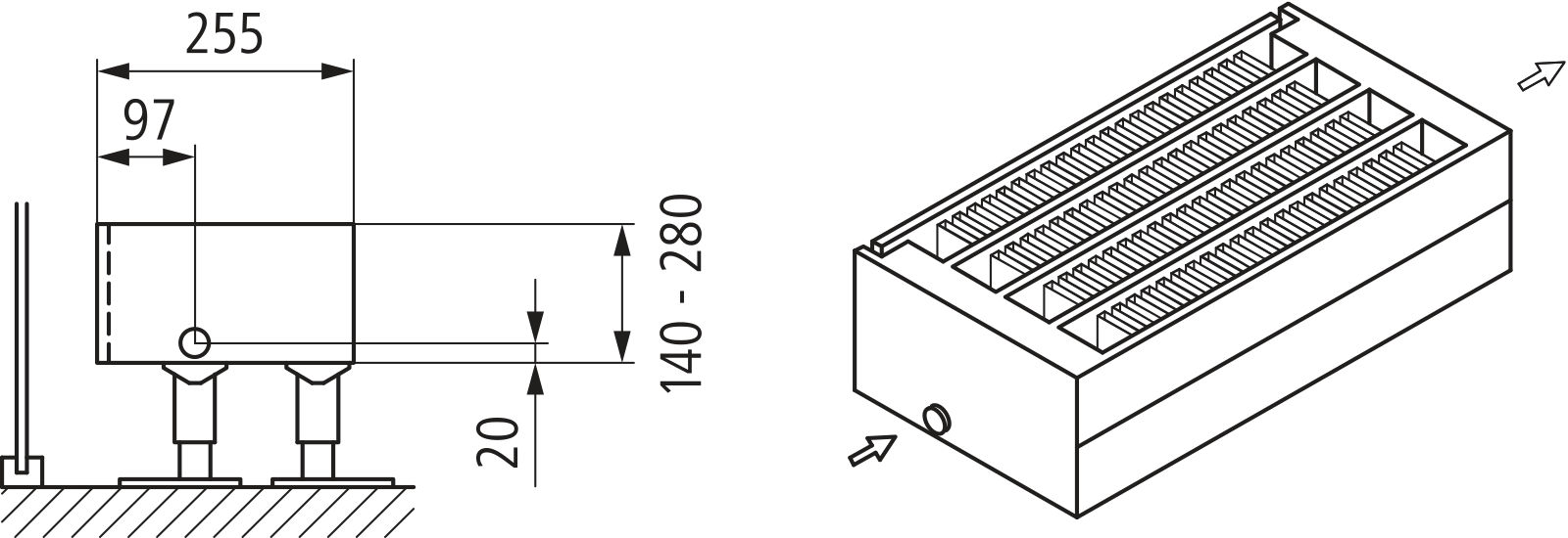 Specjalna osłona przeciw wypromieniowaniu ciepła montowana jest na tylnej ścianie konwektora. Uniemożliwia ona promieniowanie ciepłego powietrza w stronę przeszklonej powierzchni i dzięki temu zmniejsza stratę ciepła aż do 80%.